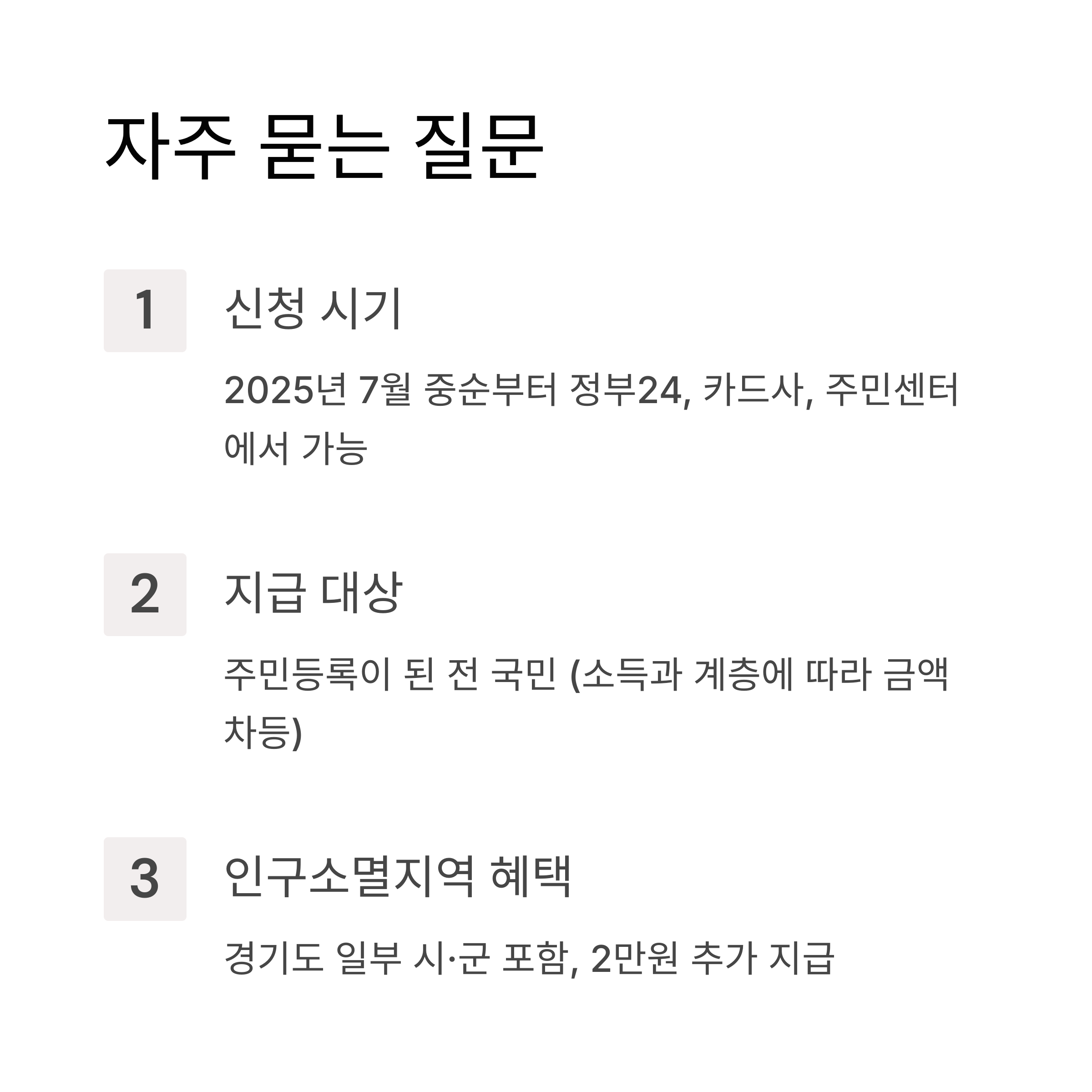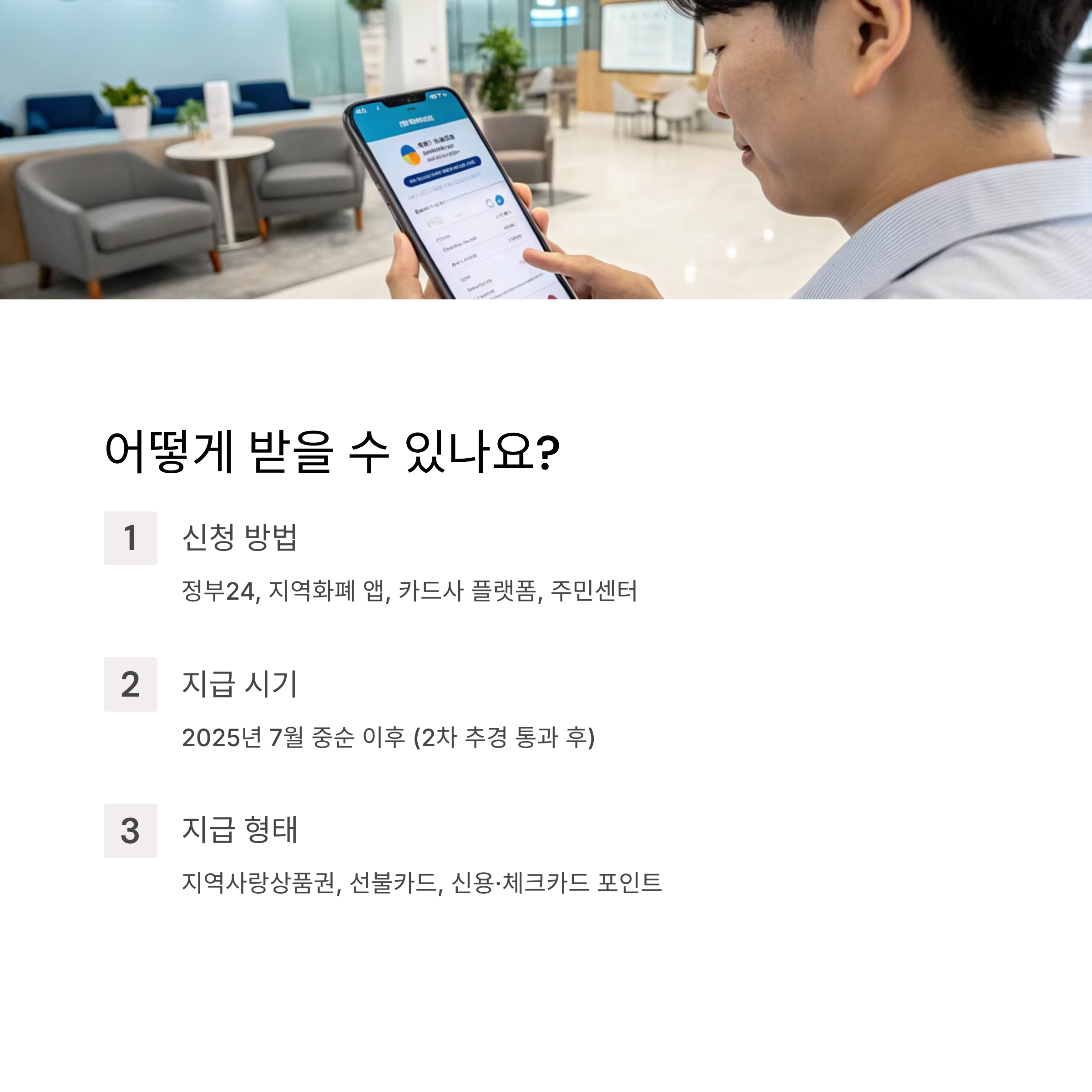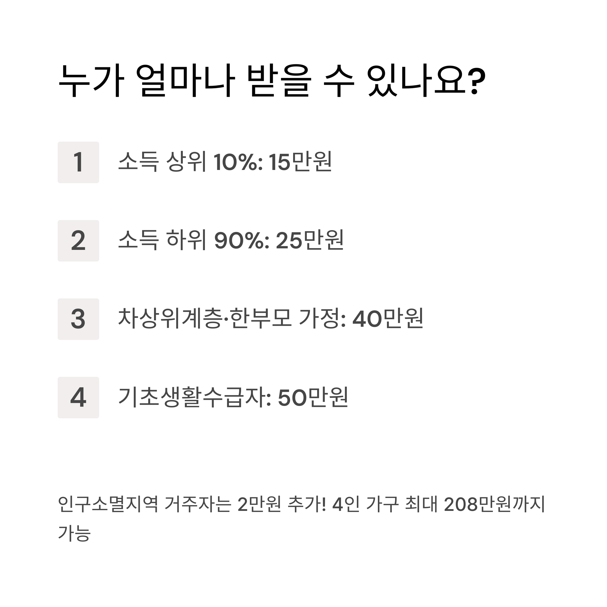 • 지급 시기: 2025년 7월 중순 이후 (2차 추경 통과 후 즉시)