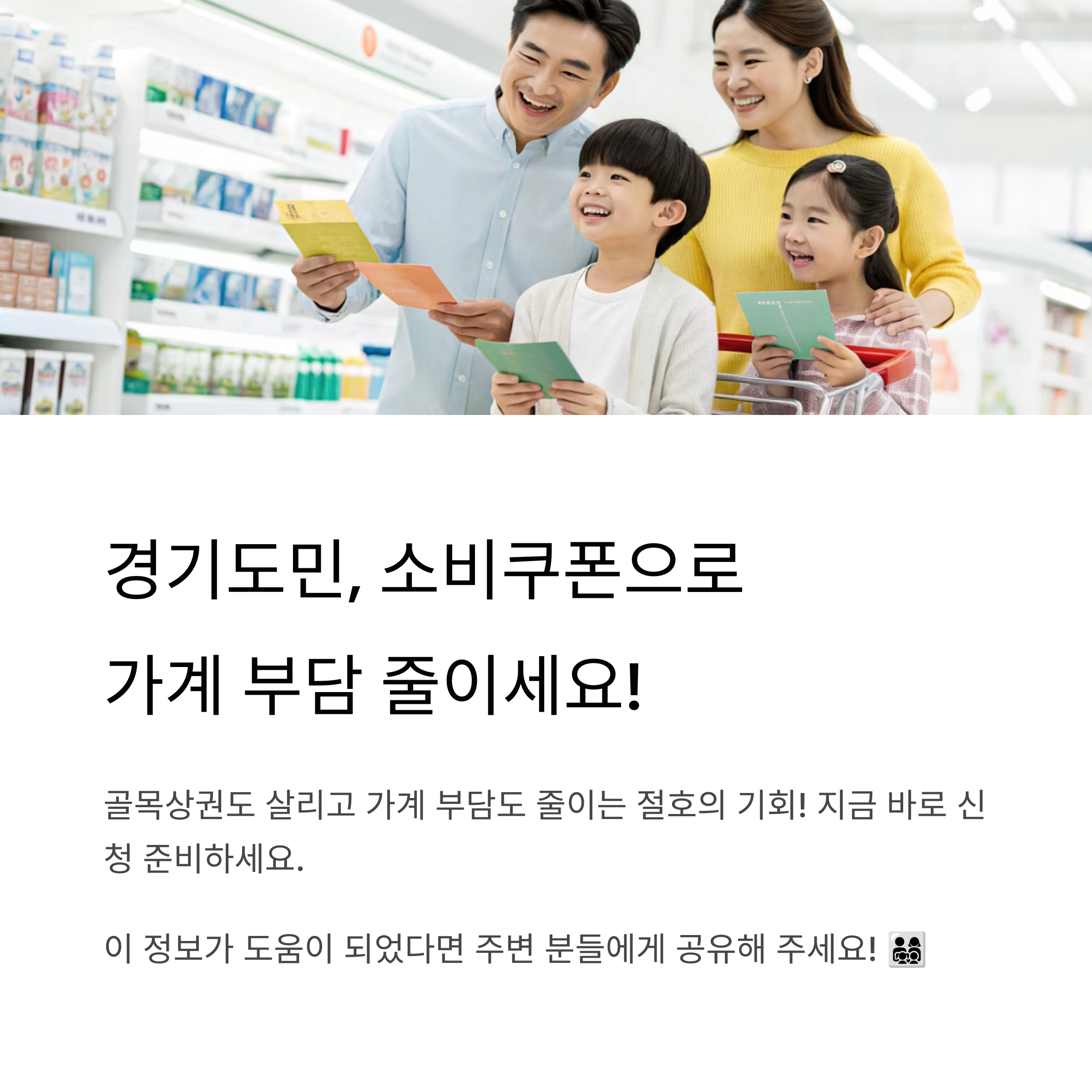 경기도민이라면 이번 소비쿠폰을 꼭 챙기세요! 골목상권 살리고, 본인 가계부담도 줄이는 기회입니다.