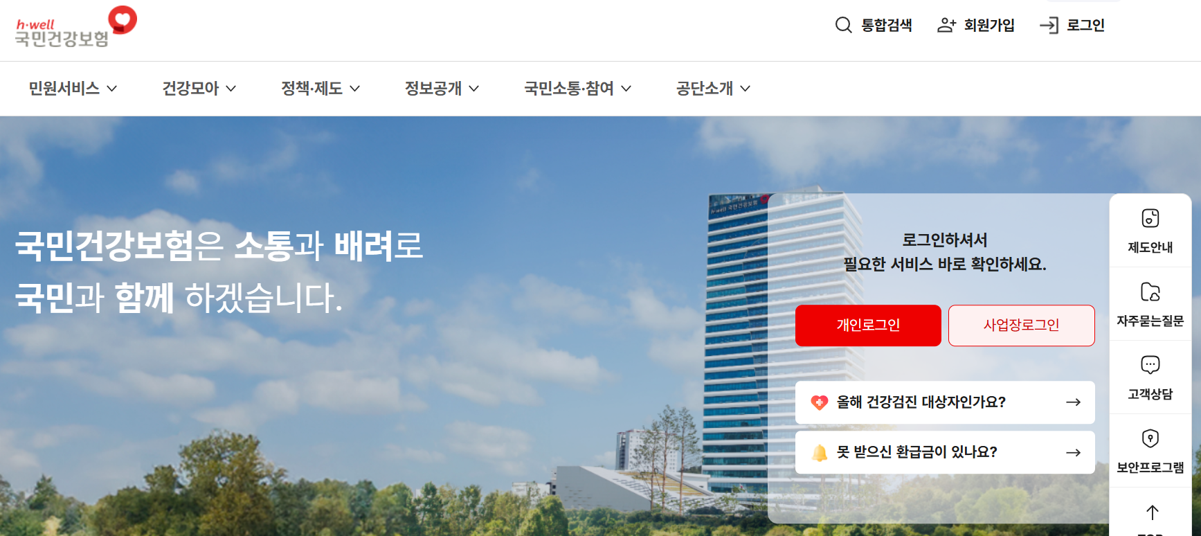 ✅ 1단계: 국민건강보험공단 홈페이지 접속