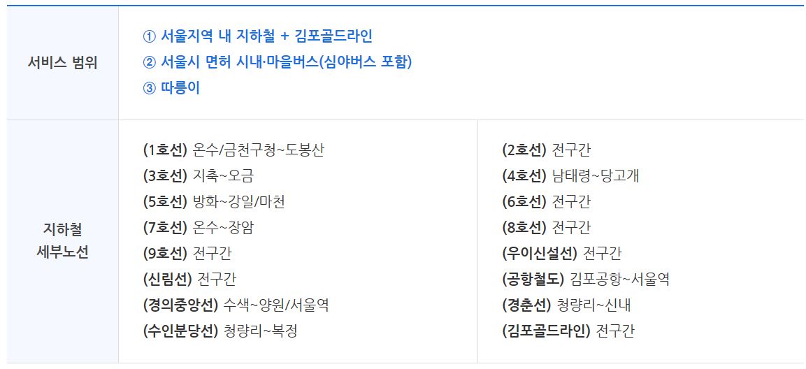 - 30일간 할인된 가격으로 무제한 대중교통 이용