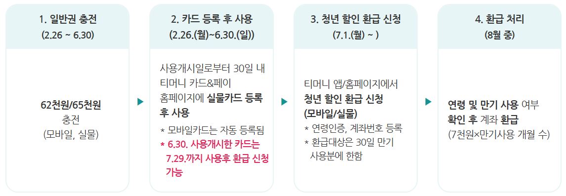 - 티머니 앱/홈페이지에서 청년 할인 환급 신청(모바일/실물)