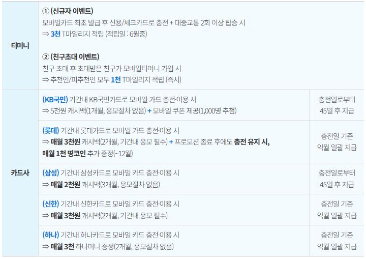 * 자세한 참여방법 및 유의사항은 '모바일티머니' 앱과 각 카드사 이벤트 상세페이지에서 확인