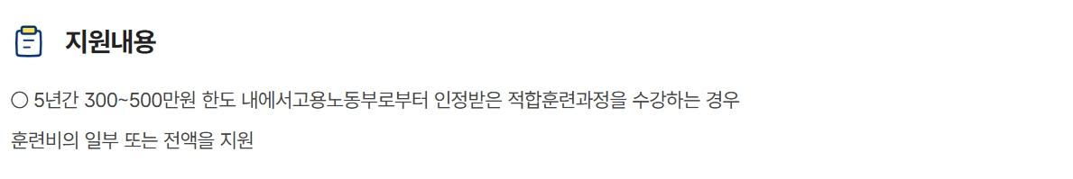 5년간 최대 500만 원 한도 내에서 훈련비 지원