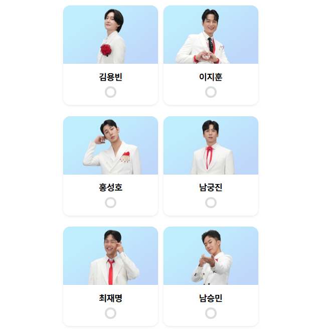 - 투표 링크 클릭 후 응원하는 참가자 선택