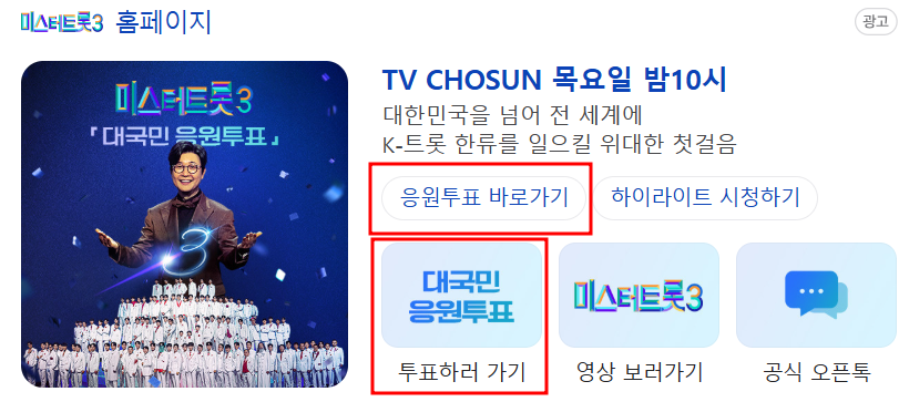- 네이버 검색창에 "미스터트롯3 투표" 입력