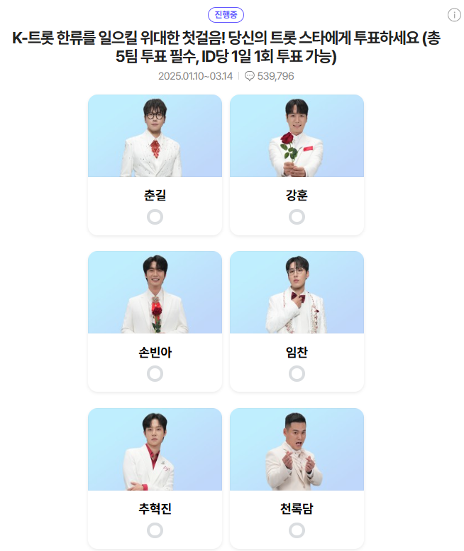 - ✅ 투표 대상: 미스터트롯3에 출연 중인 참가자