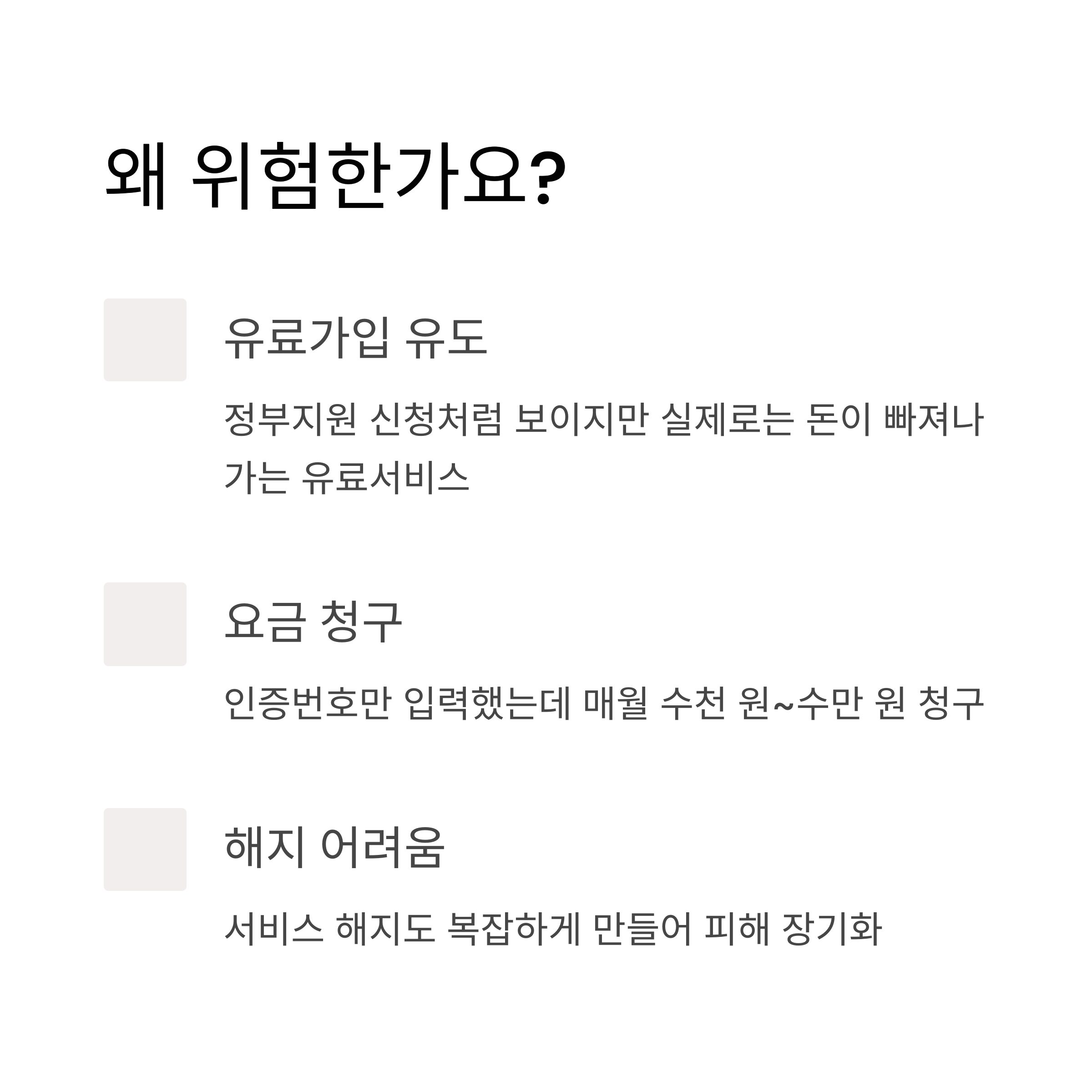 - 서비스 해지도 복잡하게 만들어 피해 장기화