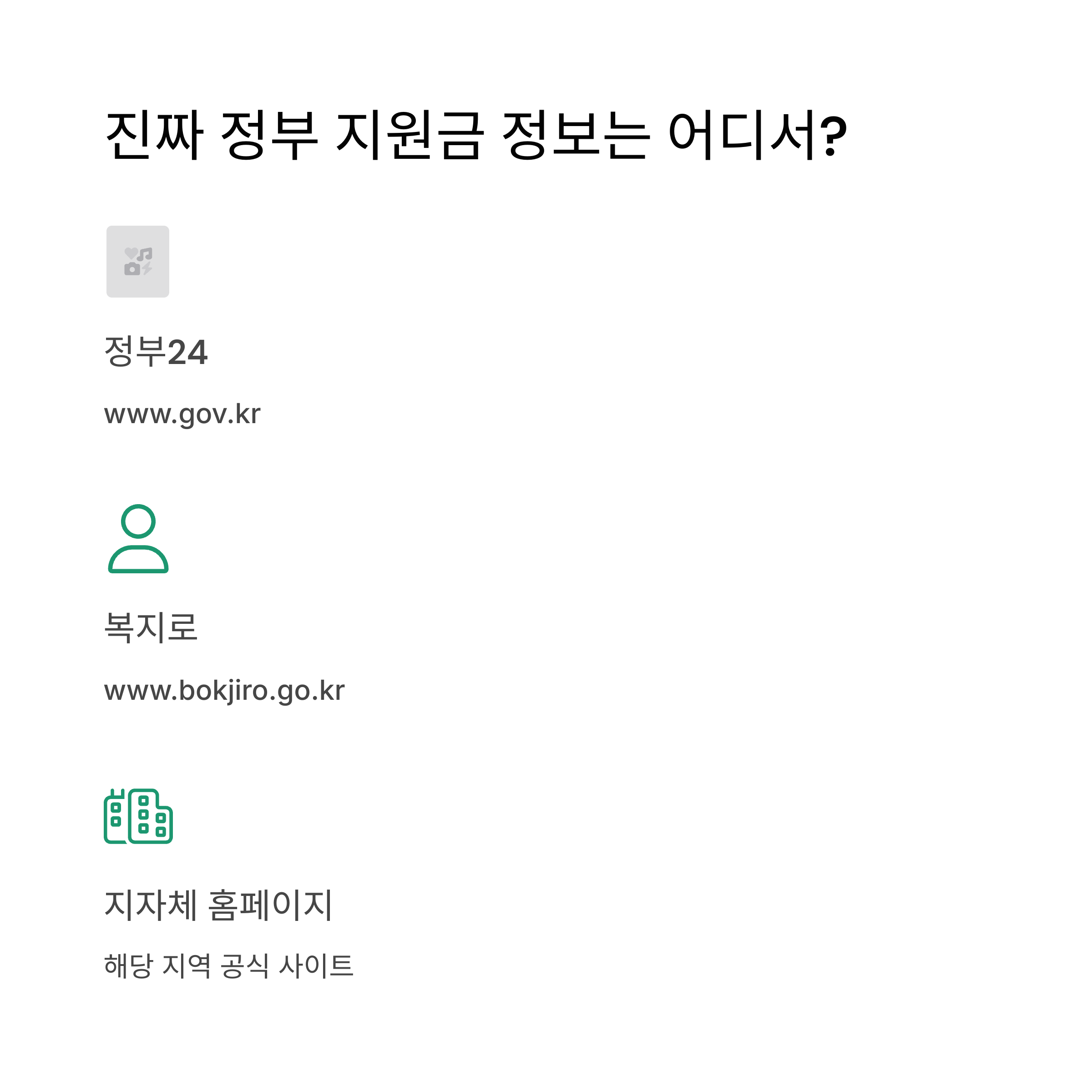 정부 지원금 정보는 반드시 정부24 또는 대한민국 정책브리핑에서 확인하세요.