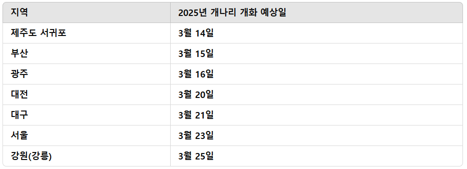 📌 제주·부산 등 남부 지역에서 가장 먼저 개화하며,