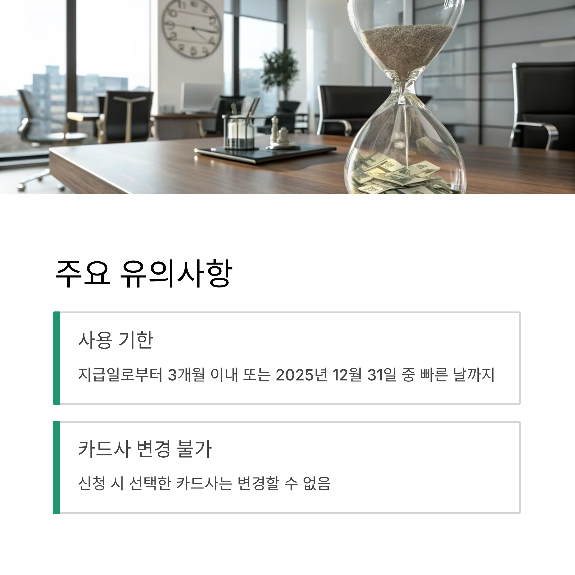 ⚠️ 잔여 금액은 이월 또는 환불되지 않으며, 지급일 기준 3개월 또는 2025년 12월 31일 중 빠른 날에 소멸됩니다.