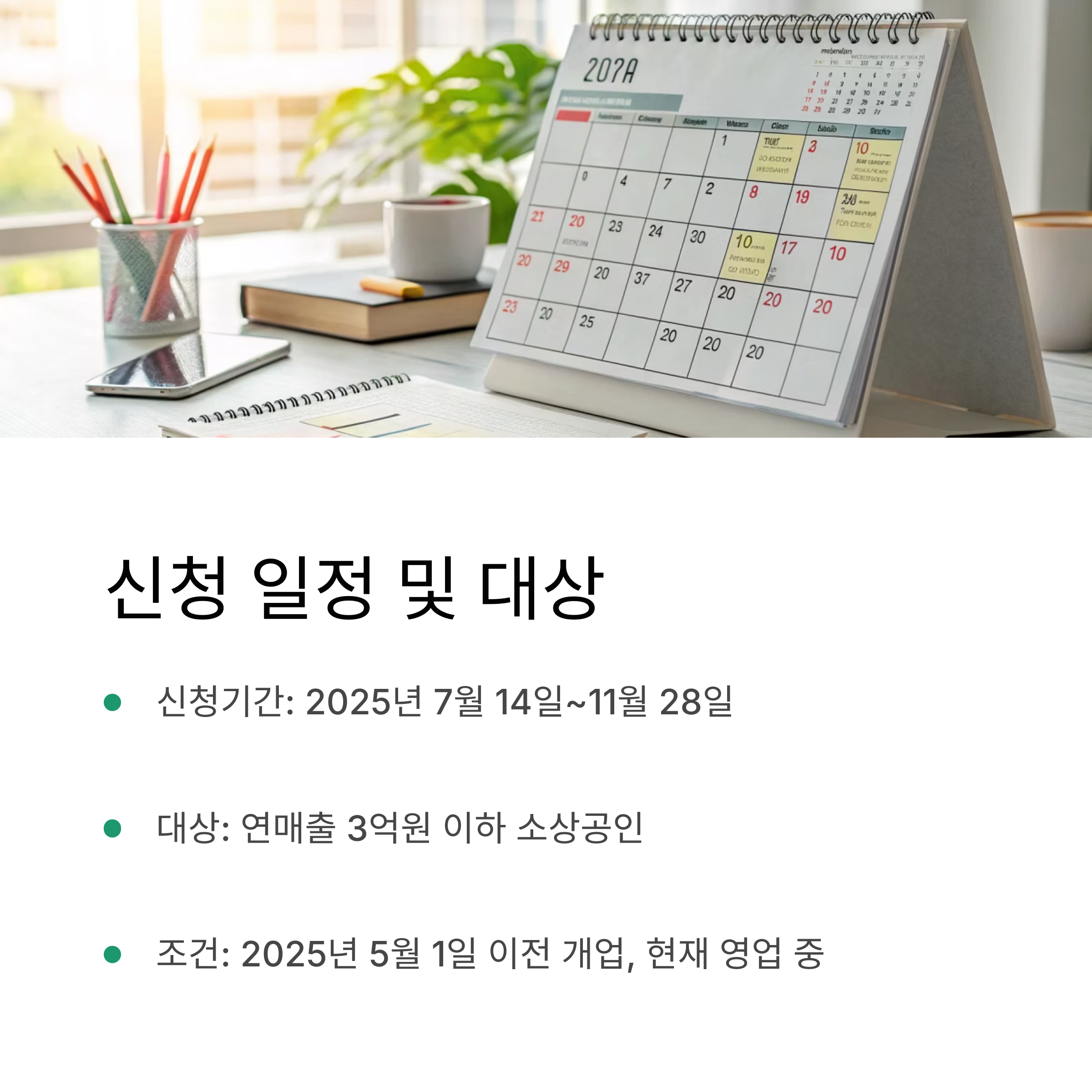 | 연매출 기준 | 2024~2025년 연매출 0원 초과 ~ 3억 원 이하 소상공인 |