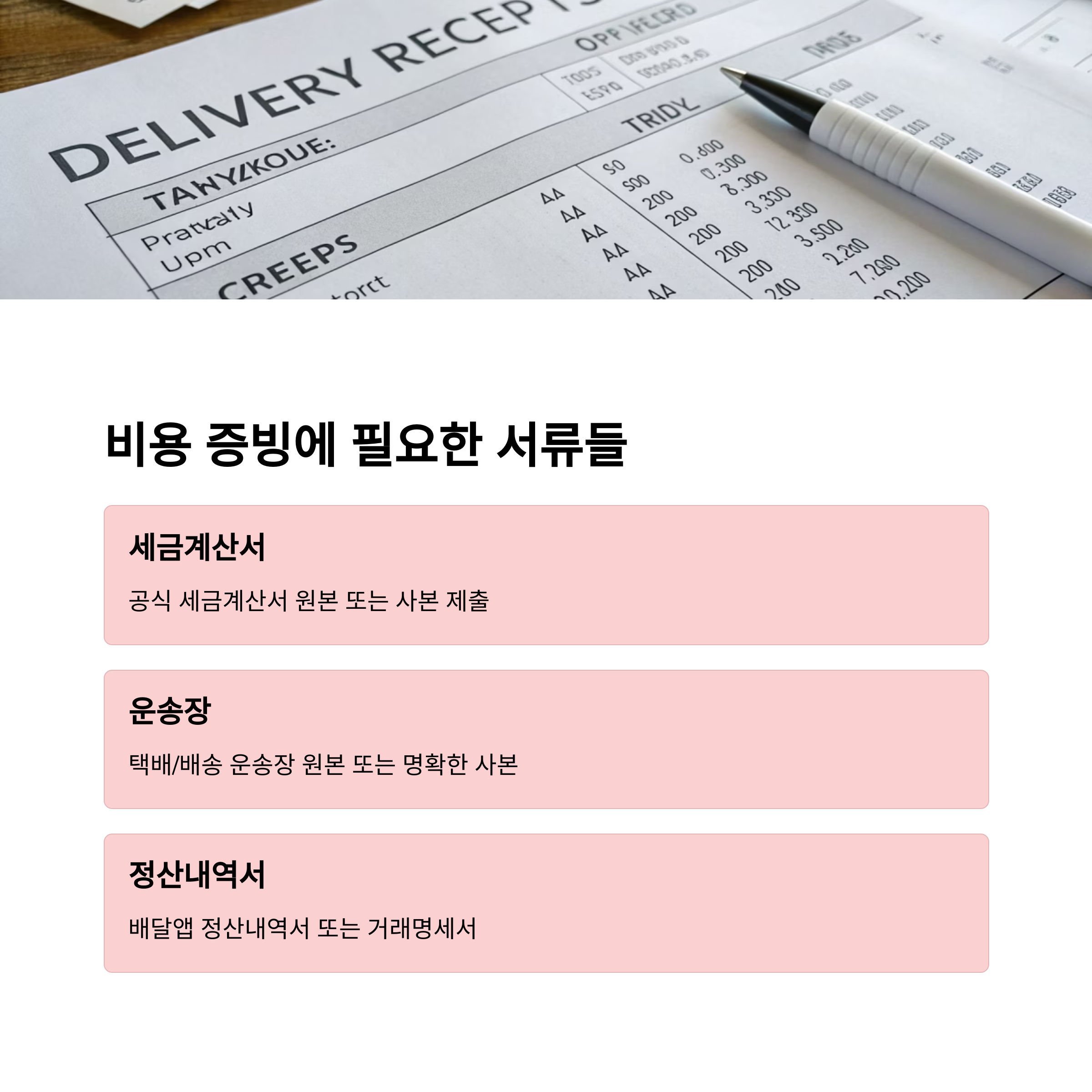 ➡ 배달·택배 비용 지출을 입증할 수 있는 모든 서류를 제출해야 합니다.