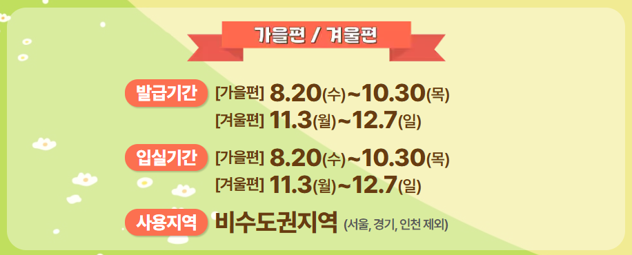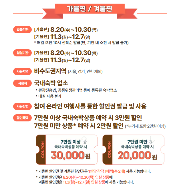 👉 1인당 시즌별 1장씩, 최대 2번까지 사용 가능합니다. 가을, 겨울 여행 모두 알뜰하게 계획해보세요!