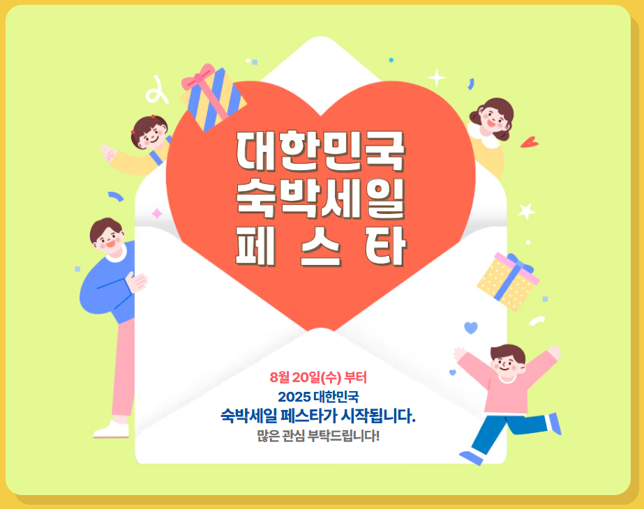 매년 여행객들에게 큰 사랑을 받는 숙박세일페스타가 2025년에도 돌아왔습니다. 문화체육관광부와 한국관광공사가 주최하는 전국 숙박 할인 이벤트로, 숙박할인권(쿠폰)을 통해 국내 여행을 저렴하게 즐길 수 있는 절호의 기회입니다.