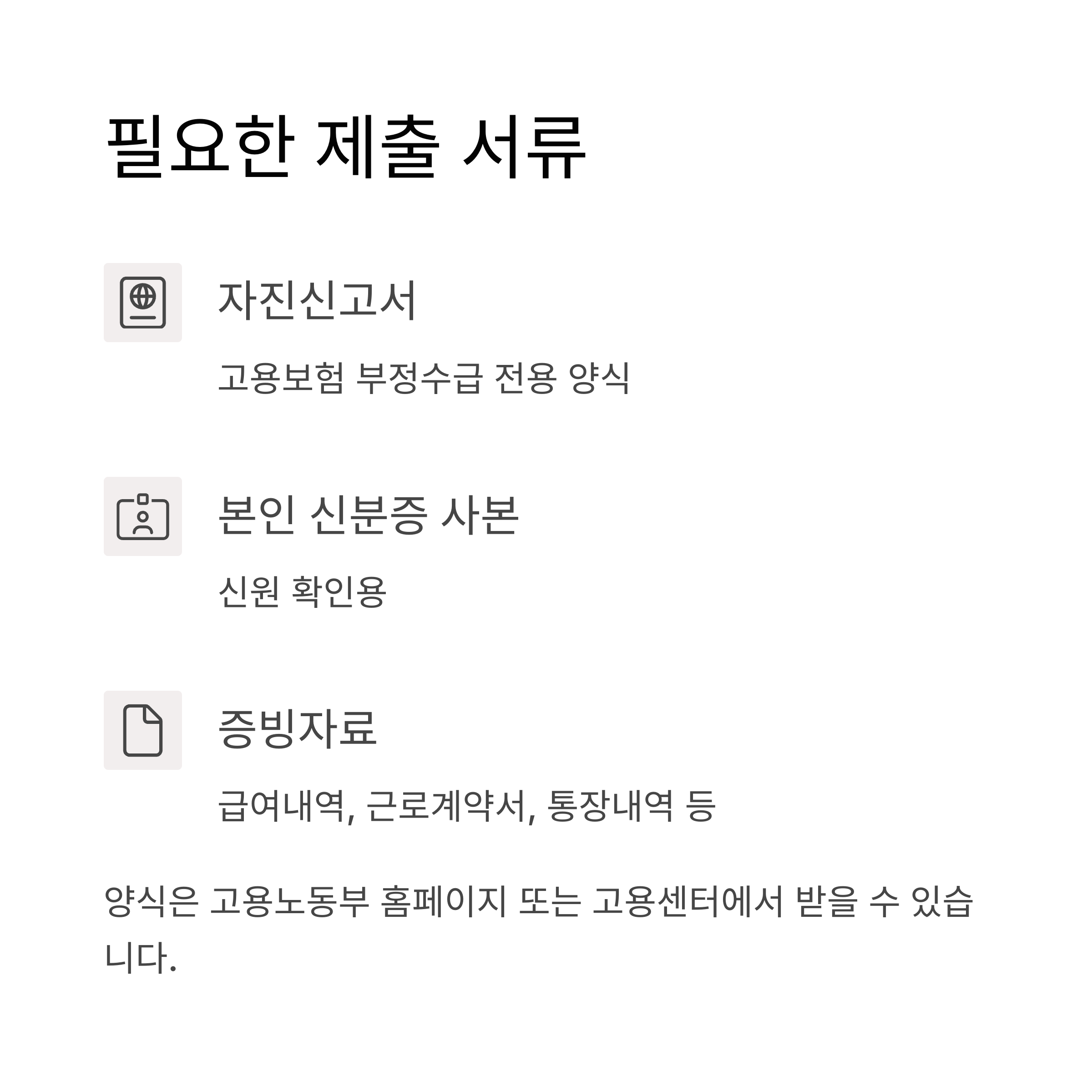 부정수급의 형태에 따라 제출 서류가 달라지므로,