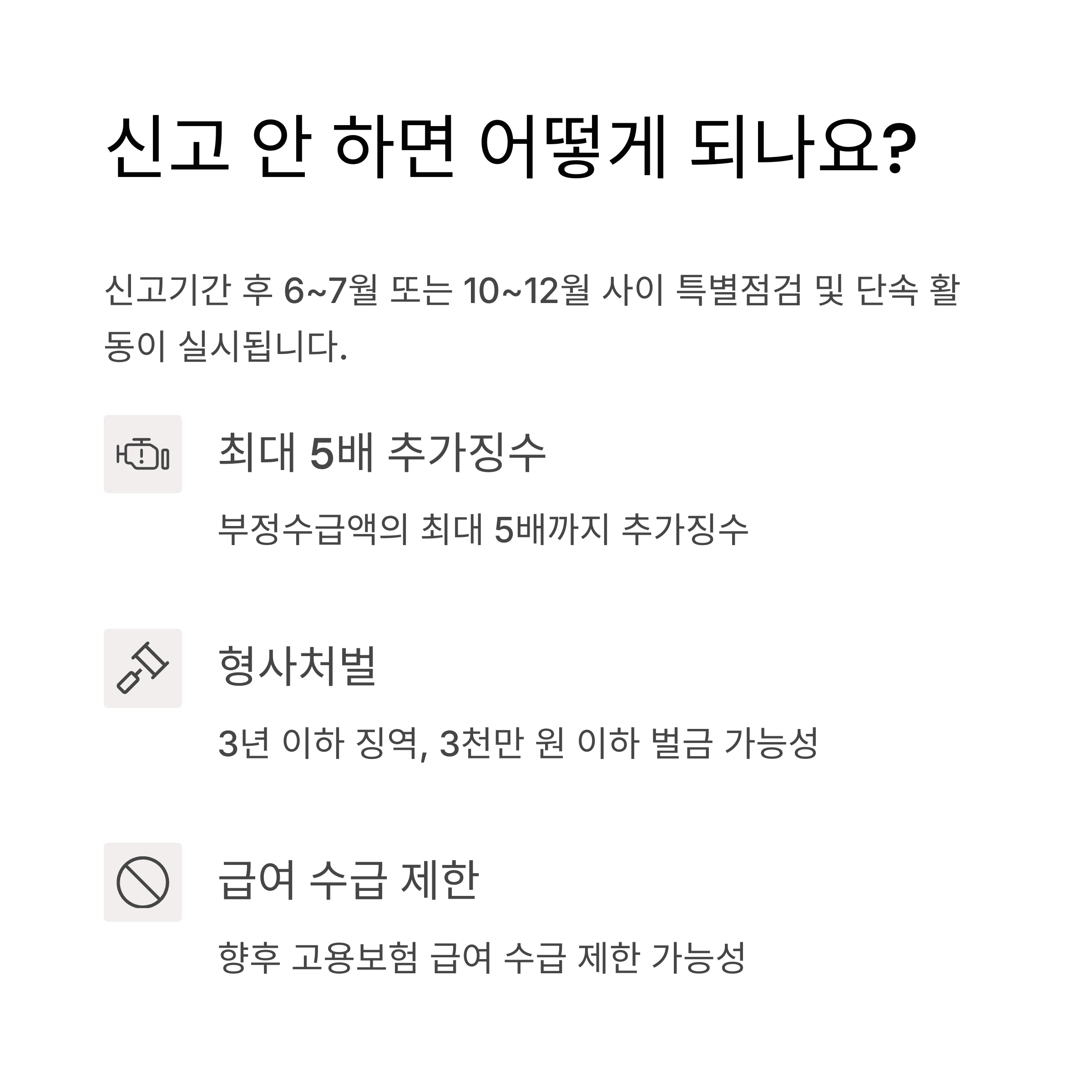 - 신고 안 하고 적발 시 → 부정수급액 최대 5배 추가징수