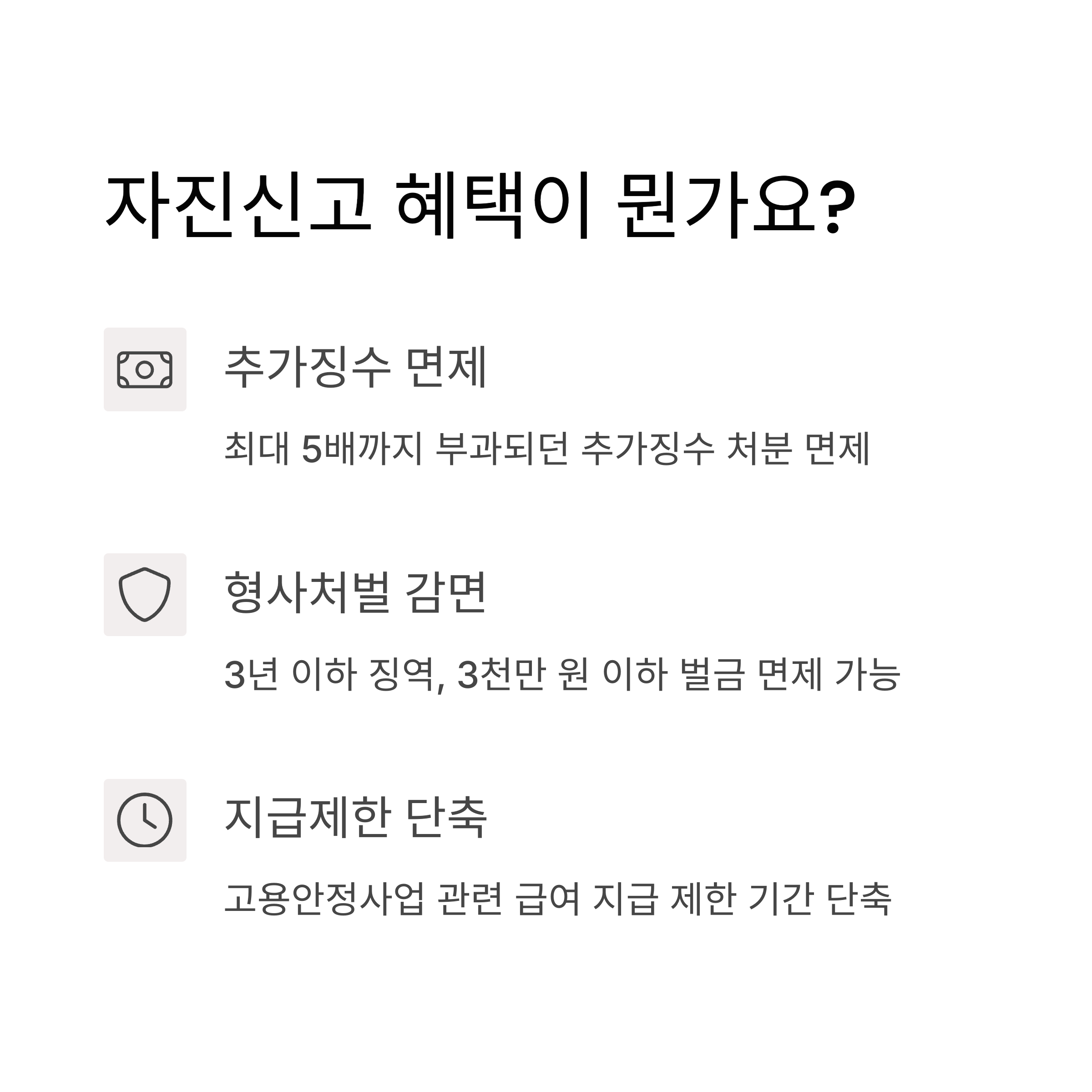 → 부정수급액은 반환해야 하나, 신고로 인한 처벌 감경은 여전히 가능합니다.