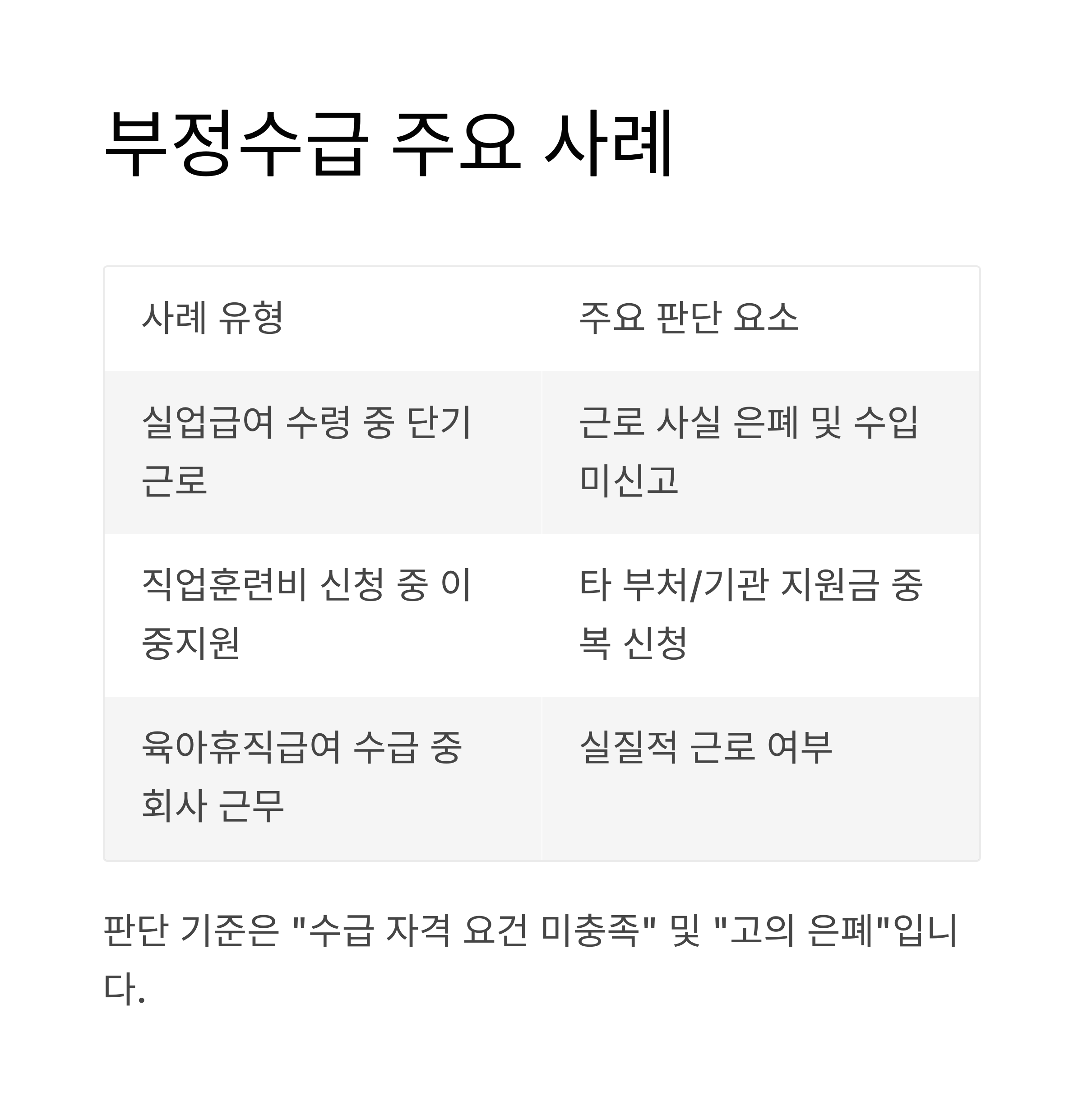 | 사례 유형 | 부정수급 해당 여부 | 주요 판단 요소 |