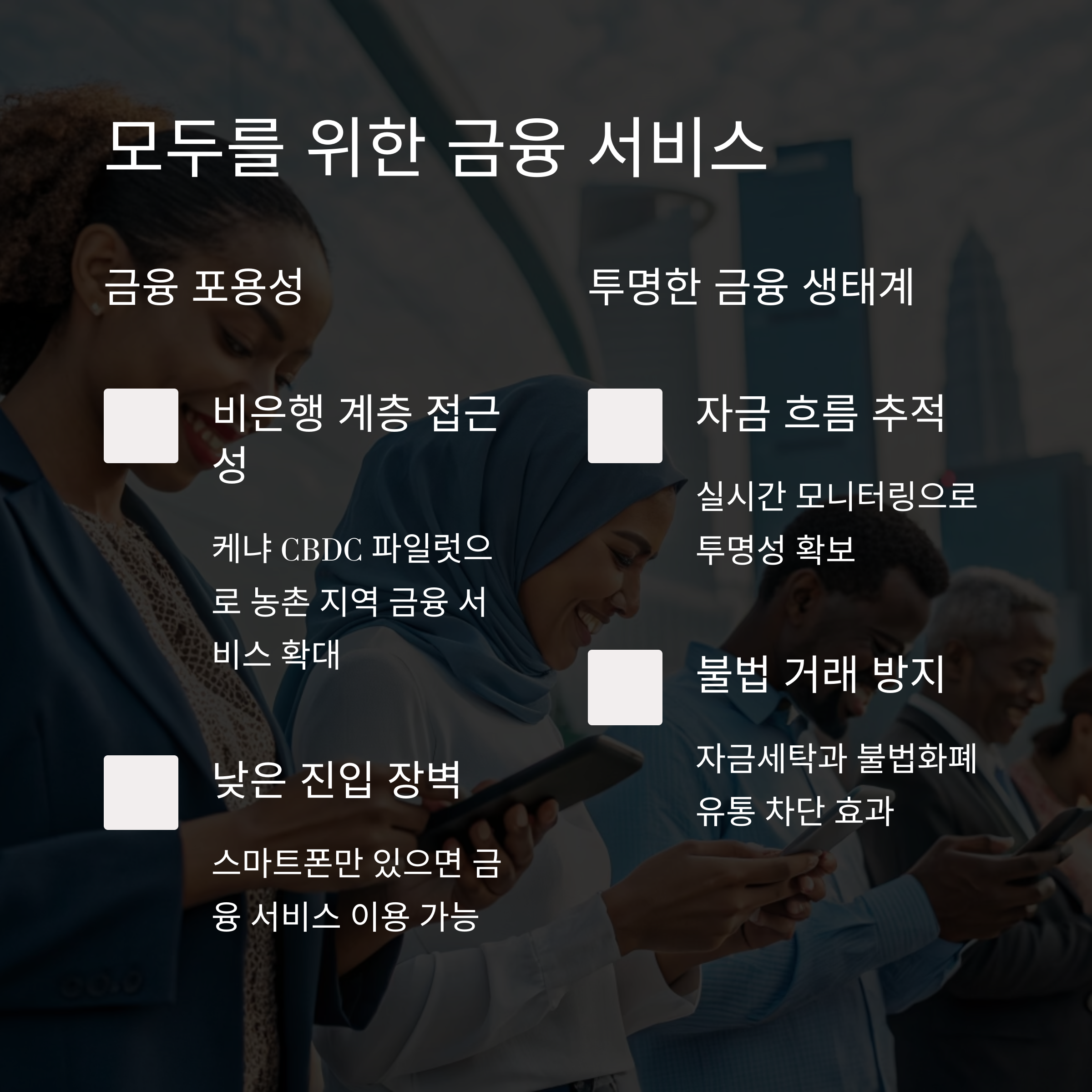 CBDC는 은행 계좌가 없는 사람도 사용할 수 있는 금융 수단이 되어 금융 포용성을 확대합니다.
