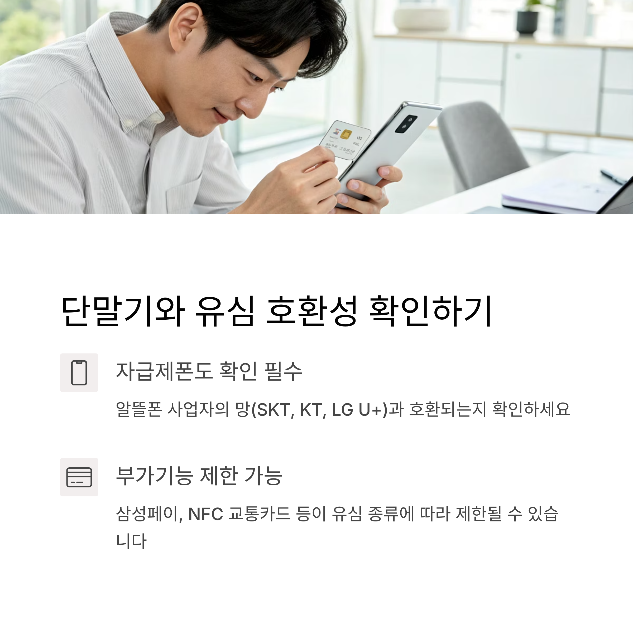 📌 유심 호환 여부는 알뜰폰사 홈페이지나 고객센터에서 기종별로 확인 가능