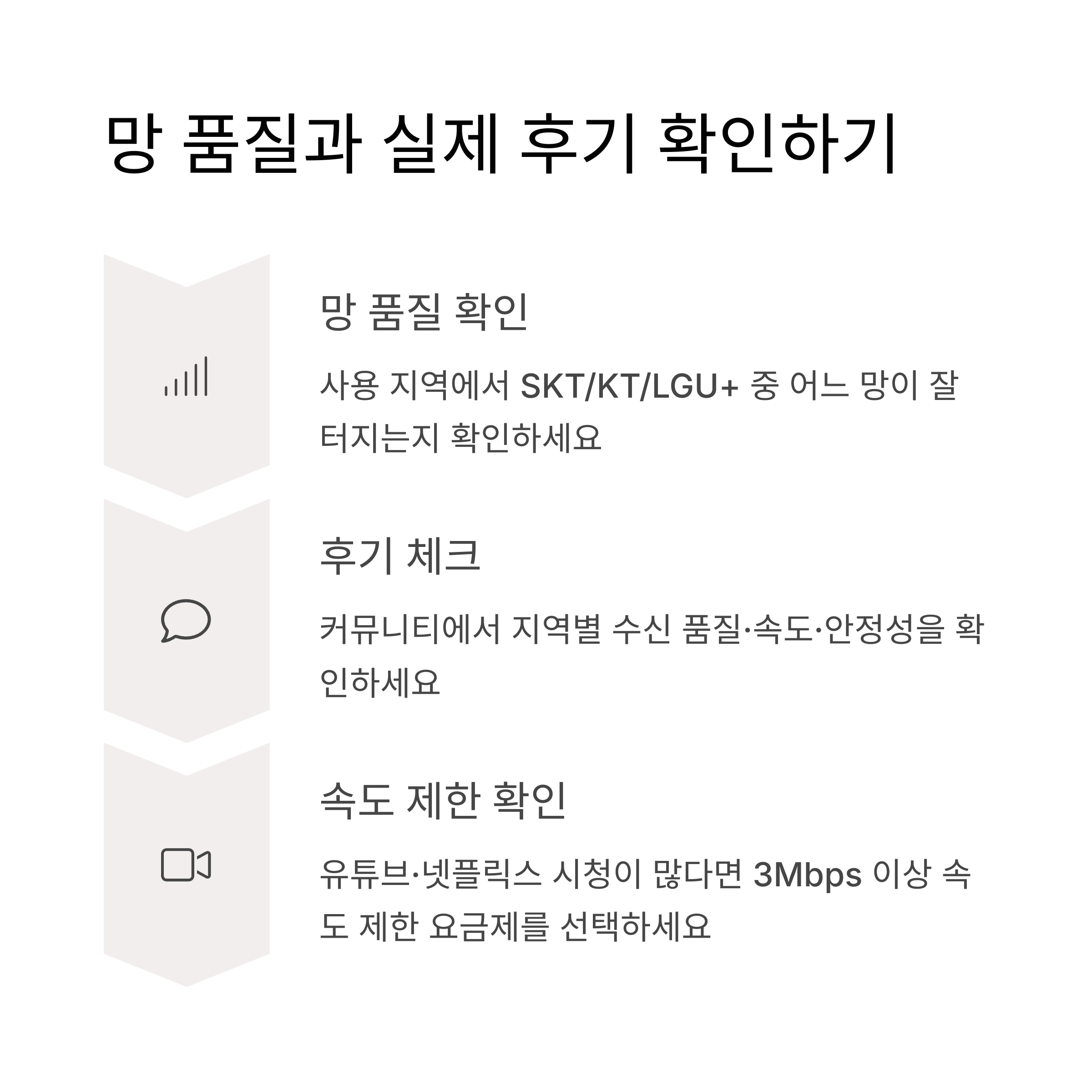 • 커뮤니티/후기에서 지역별 수신 품질·속도·안정성 체크