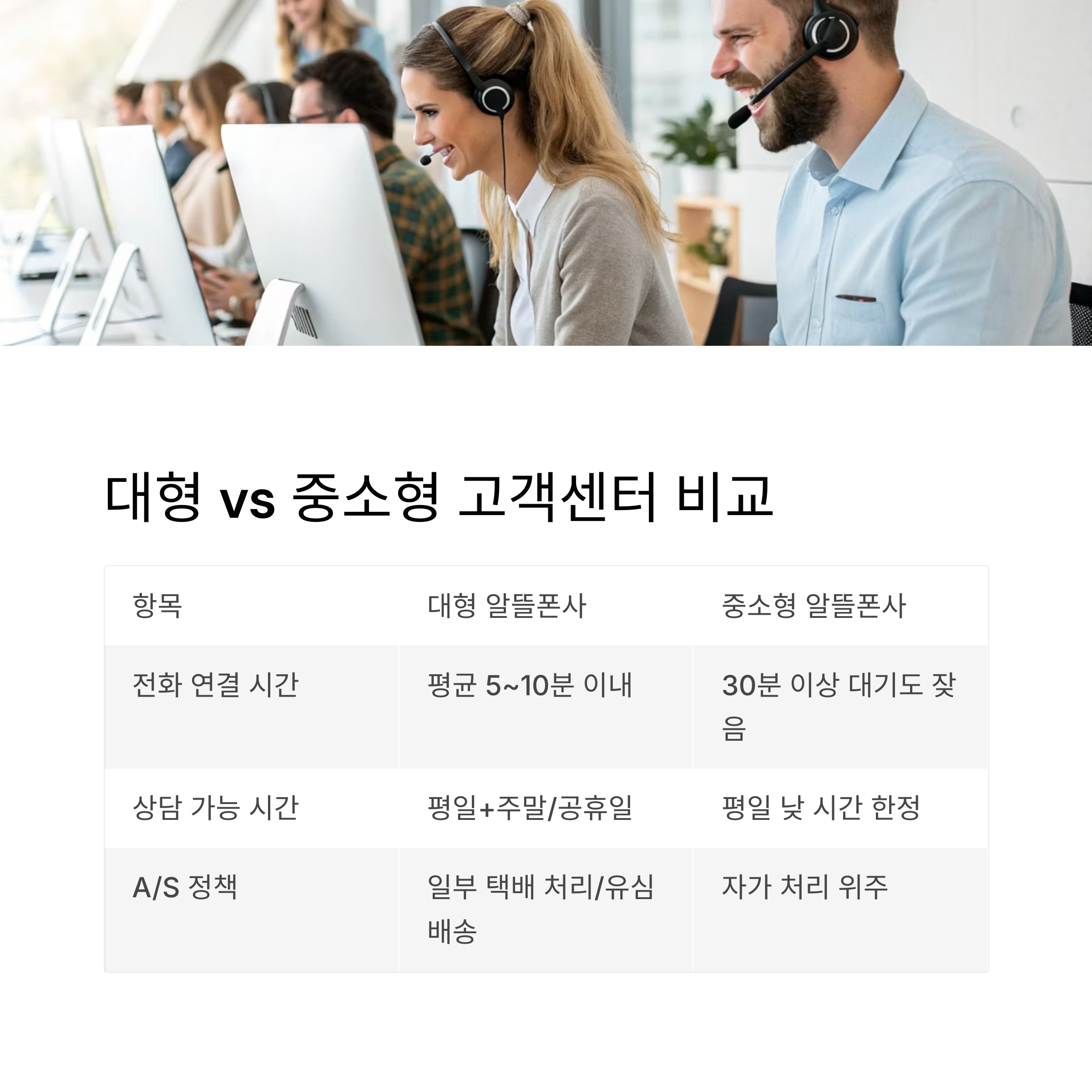 - 특히 중소형사는 상담 인력이 부족하거나, 공휴일엔 아예 닫혀 있는 경우도 많습니다