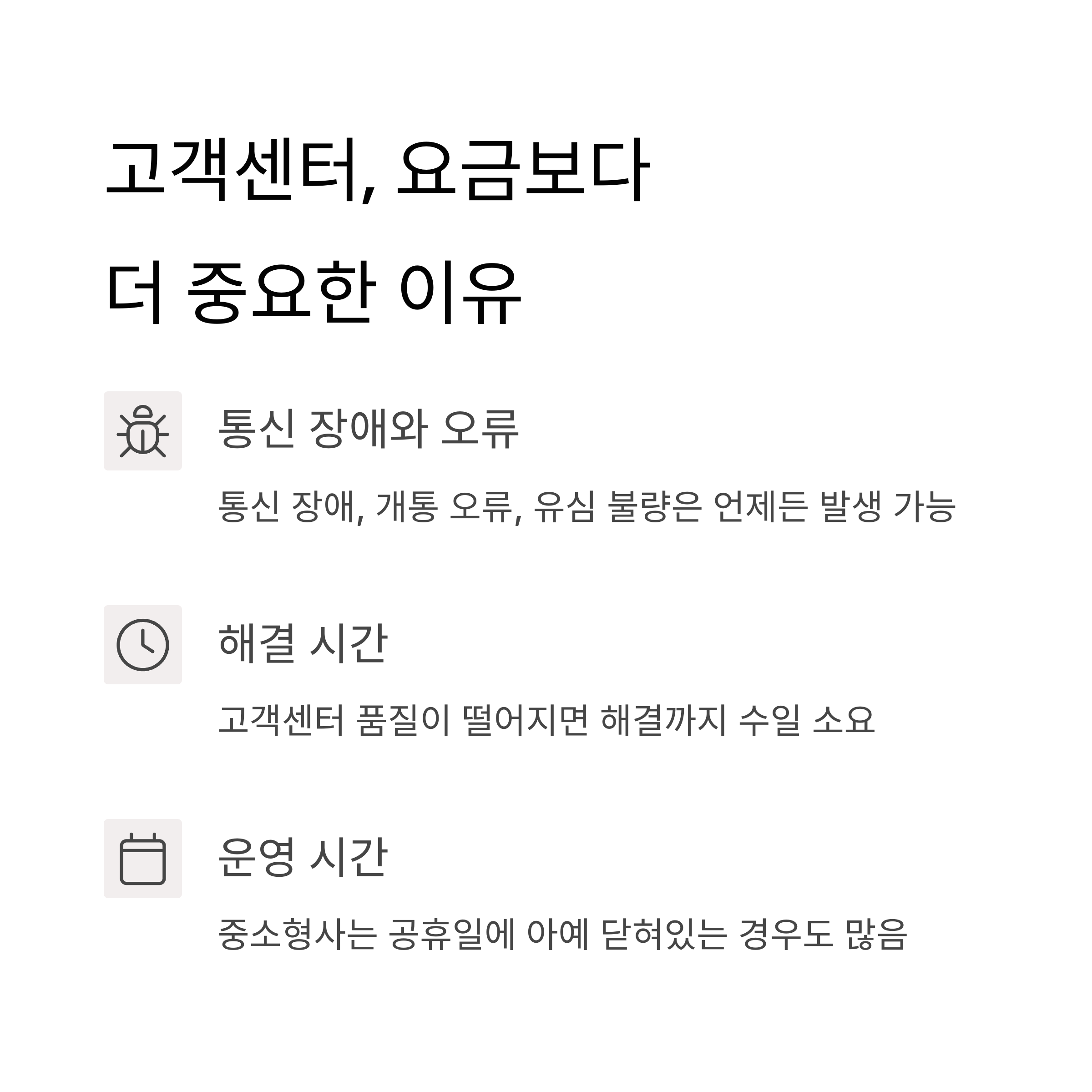 "문제 상황이 발생했을 때, 고객센터 응답 속도는 체감 품질을 결정하는 핵심 요소입니다."