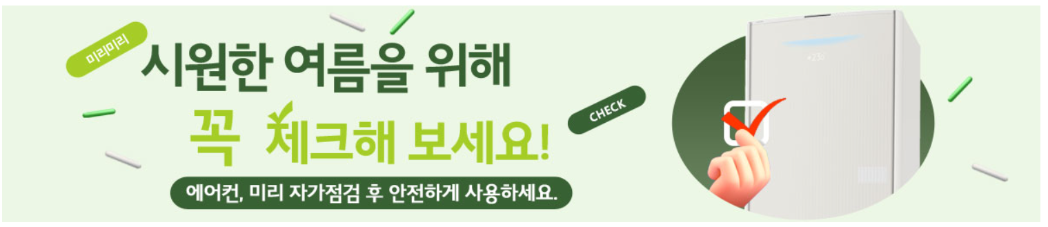 에어컨 사전 점검 신청 기간은 여름이 시작되기 전인 3~4월달에 보통 진행이 됩니다. 다만, 브랜드 별로 일정이 다르기 때문에 체크하신 후 신청해보세요. (신청 전 에어컨 모델명 확인! 잊지마세요!)