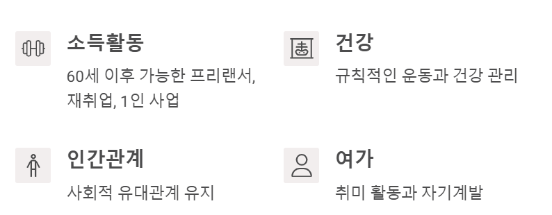 💡 노후는 단순히 ‘연금 받는 시기’가 아니라, 삶의 질을 유지하는 시기!