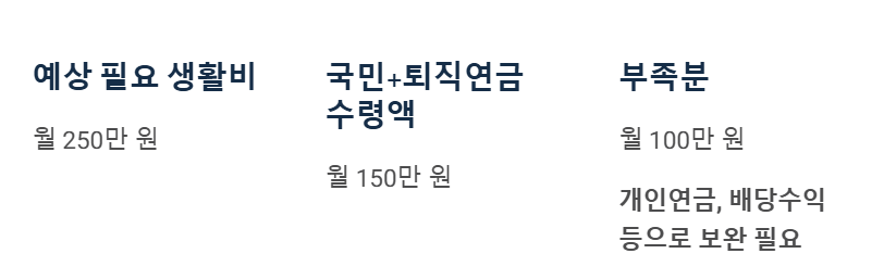 • 월 평균 필요 생활비 vs 예상 연금 수령액 비교