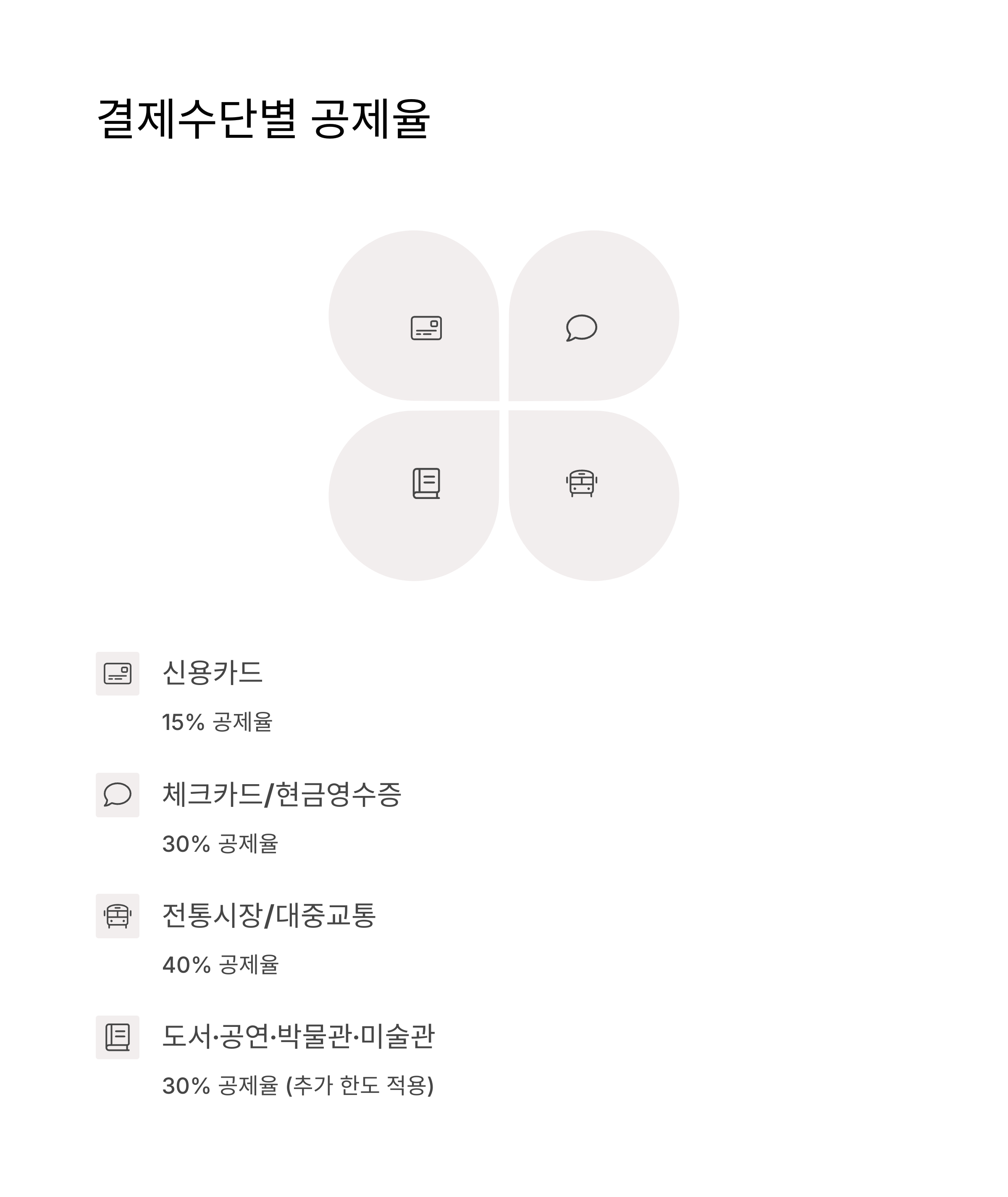 - 도서·공연·박물관·미술관: 30% (추가 한도 적용)