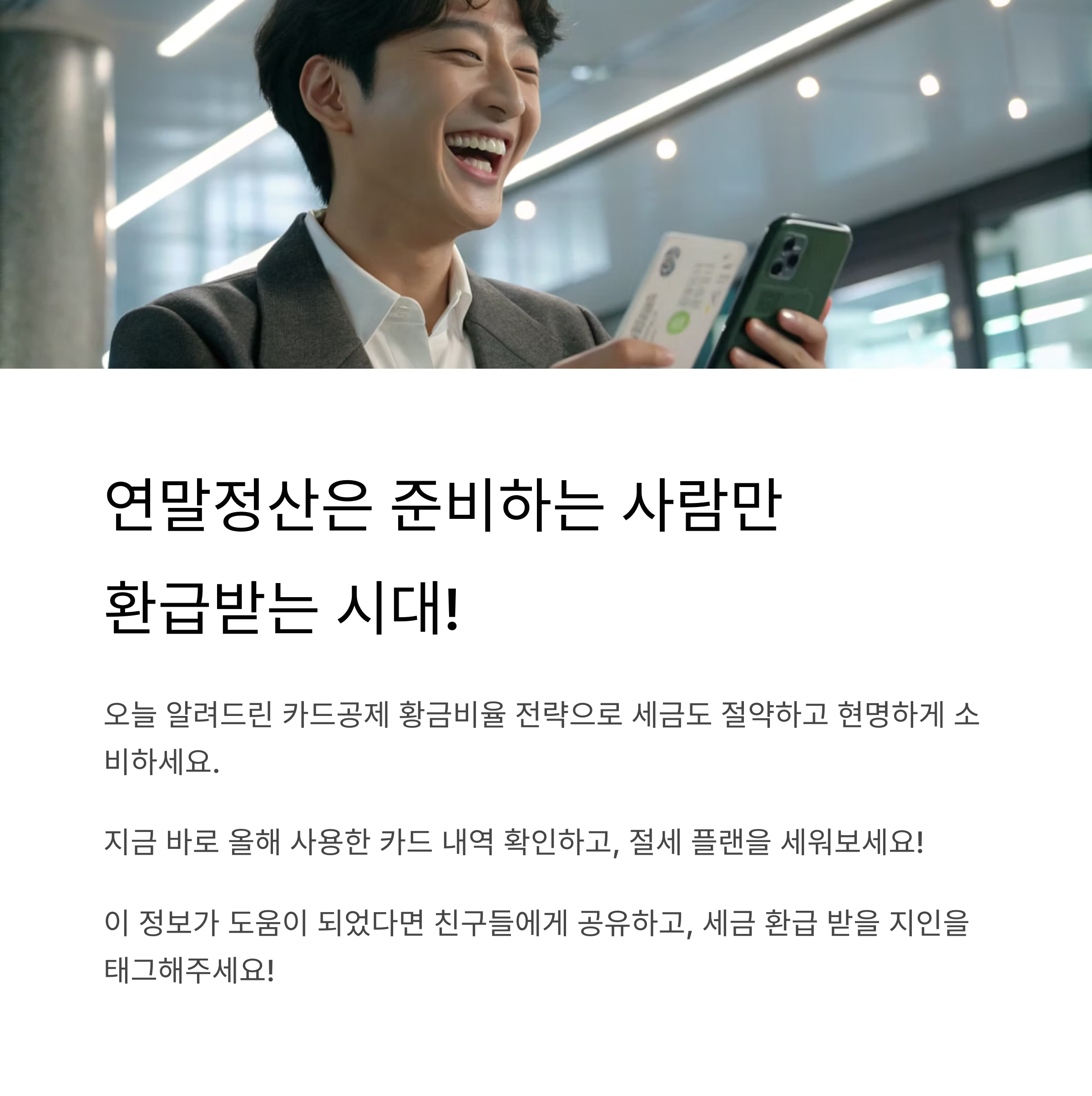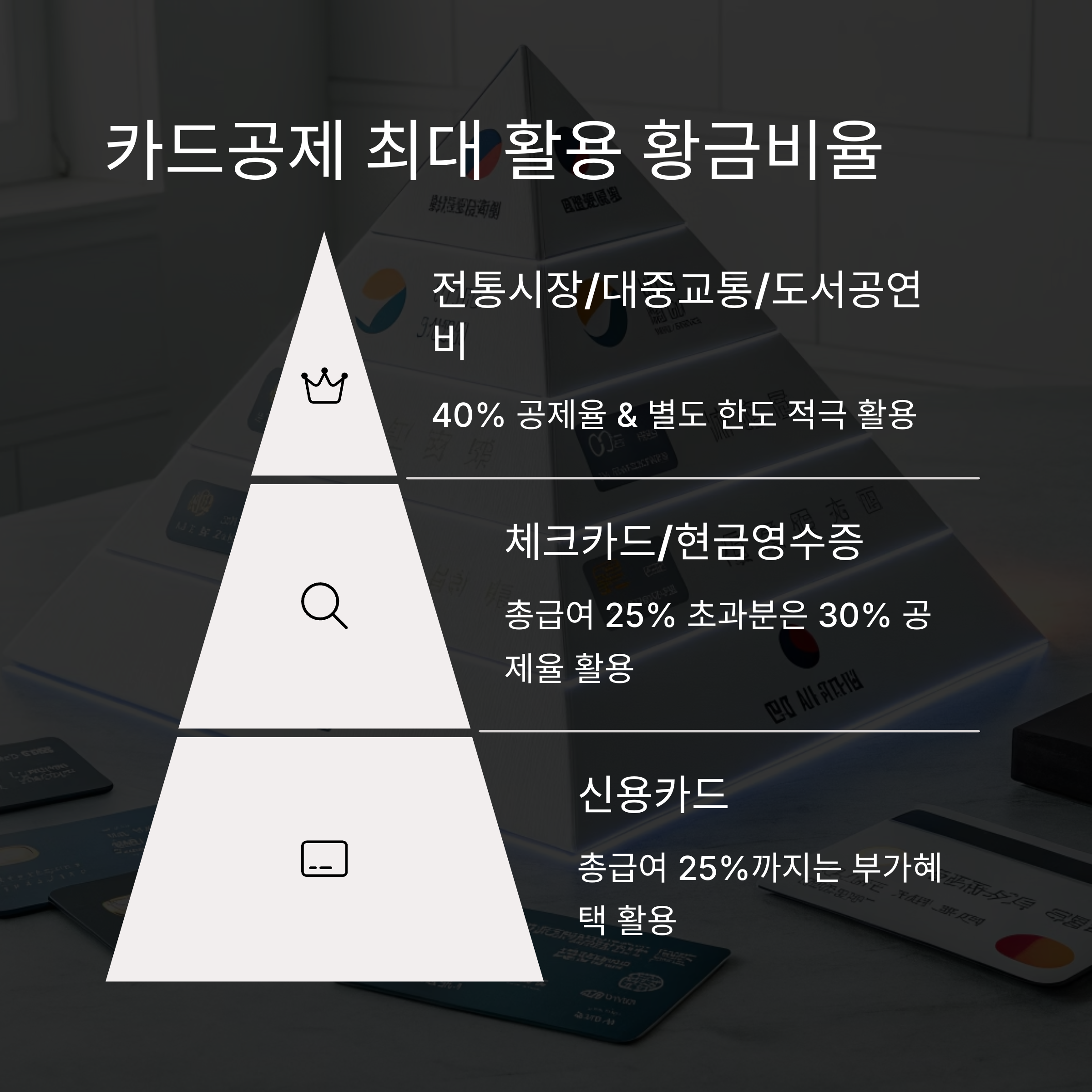 오늘 알려드린 카드공제 황금비율 전략으로 세금도 절약하고 현명하게 소비하세요.