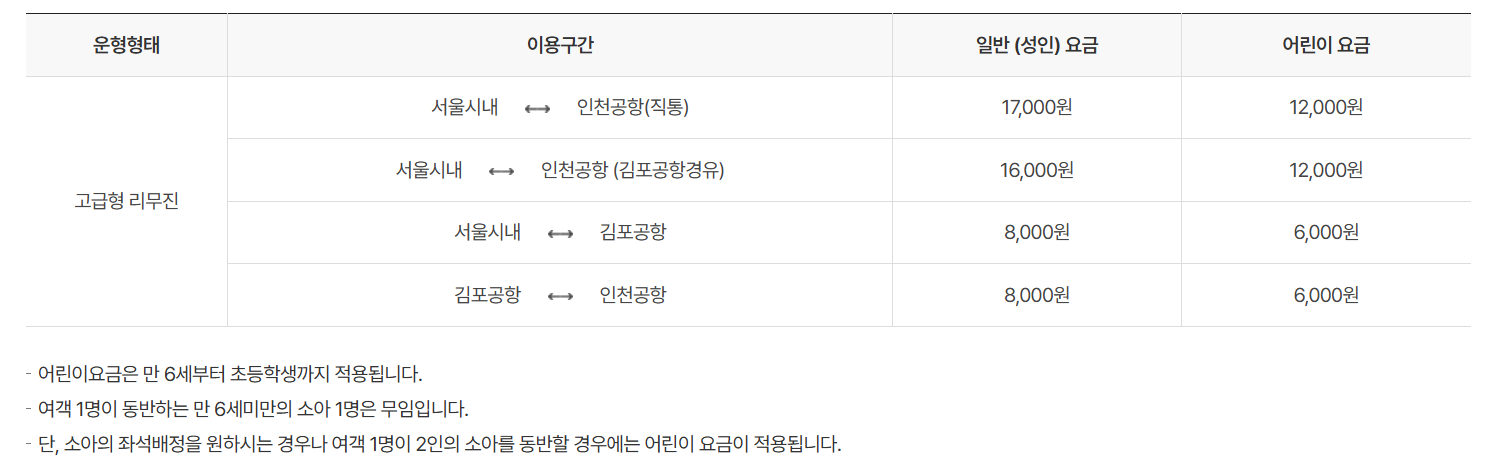 📌 공항 리무진 요금