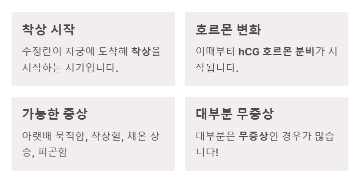 - 수정란이 자궁에 도착해 착상을 시작하는 시기입니다.
