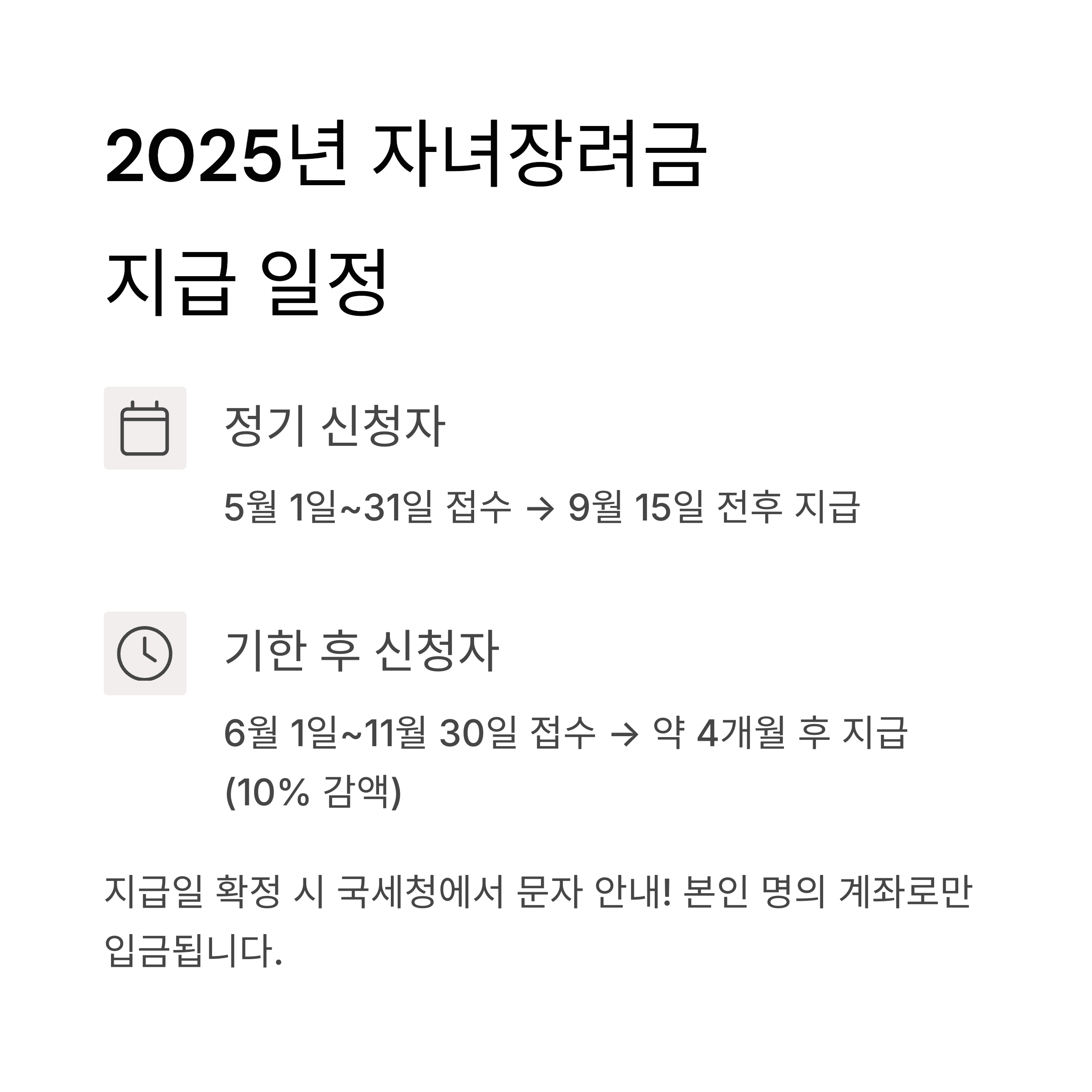➡️ 신청일로부터 약 4개월 후 지급됩니다. 단, 지급액은 10% 감액될 수 있으니 정기 신청을 추천합니다.
