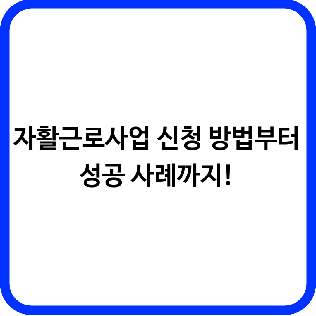 오늘은 자활근로사업의 개념, 지원 대상, 급여 및 신청 방법을 자세히 살펴보고, 실제 신청 후기 및 성공 사례도 함께 소개하겠습니다. 😊