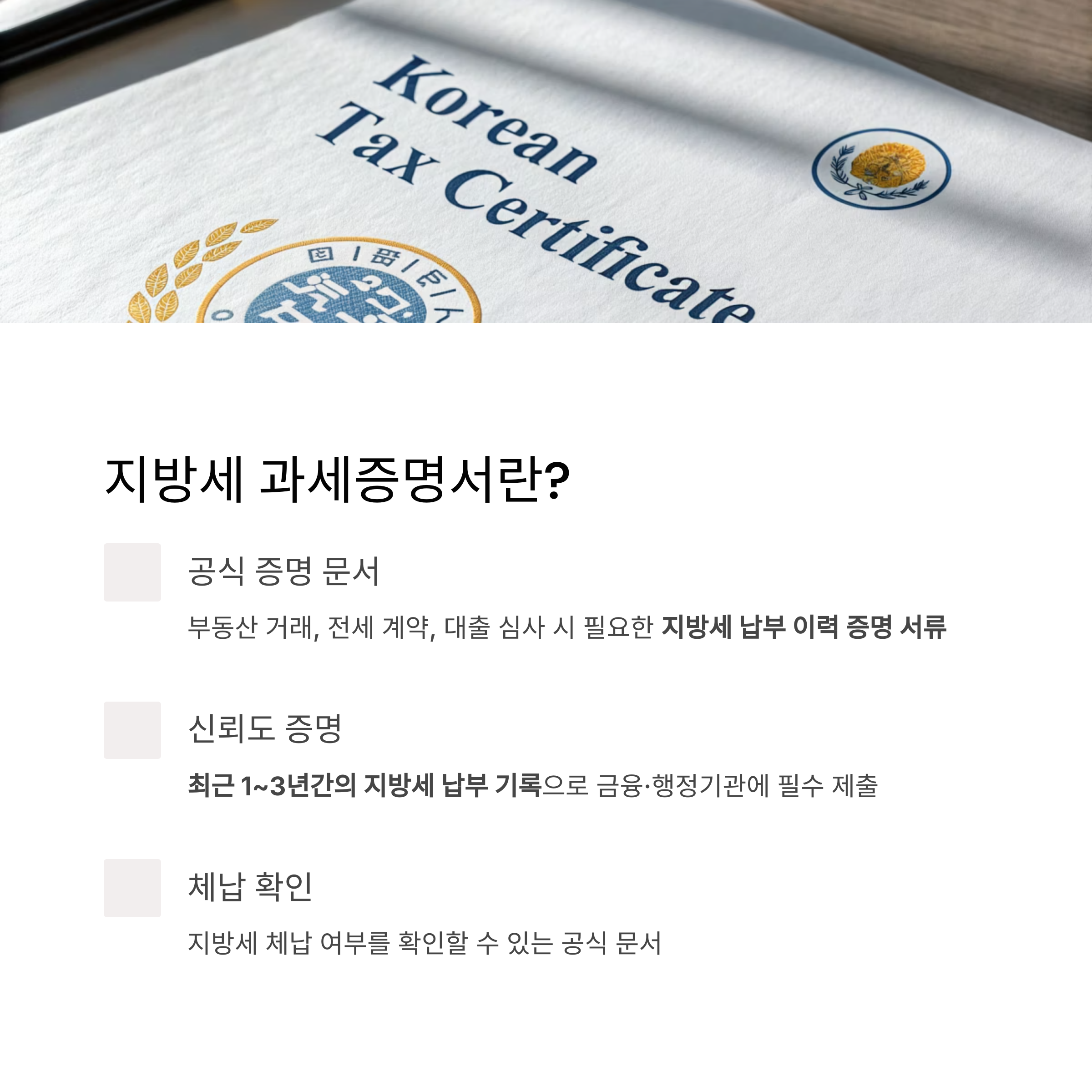 지방세 과세증명서는 부동산 거래, 전세 계약, 대출 심사, 각종 공공기관 서류 제출 시