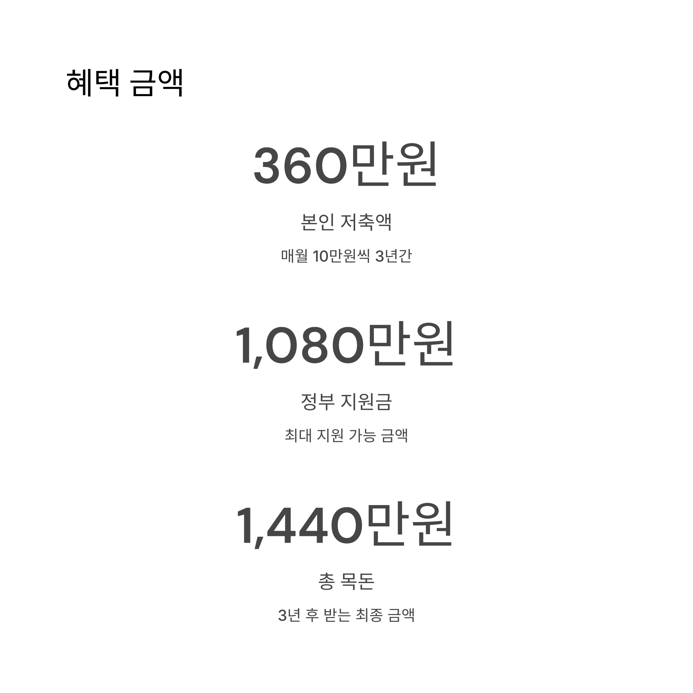 - 매월 본인이 10만 원씩 3년간 저축 → 총 360만 원