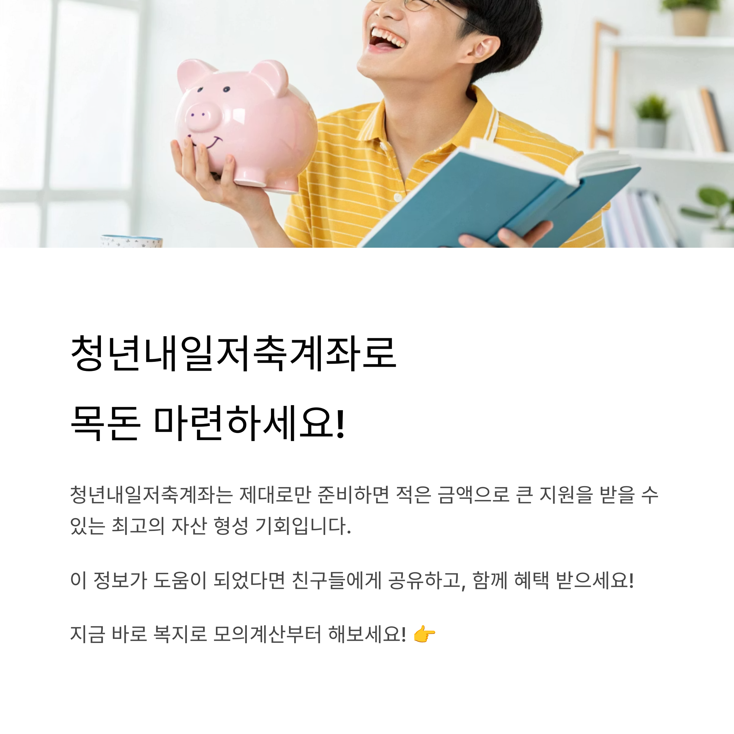 청년내일저축계좌는 제대로만 준비하면 적은 금액으로 큰 지원을 받을 수 있는 최고의 자산 형성 기회입니다.