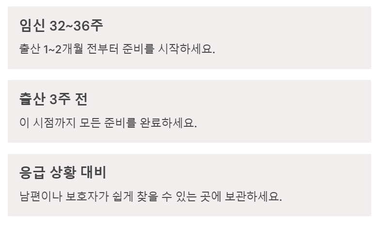 ✅ 임신 32~36주 사이 준비 시작 → 3주 전까지 완벽 완료!