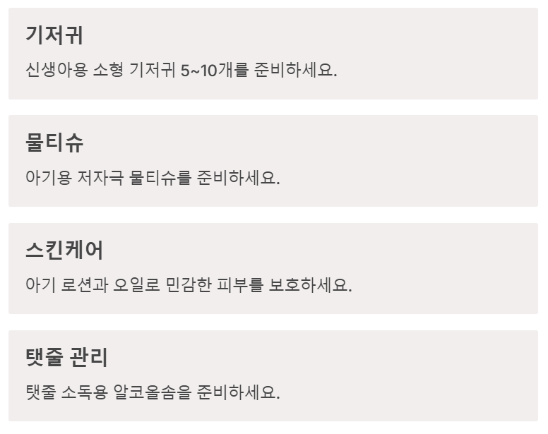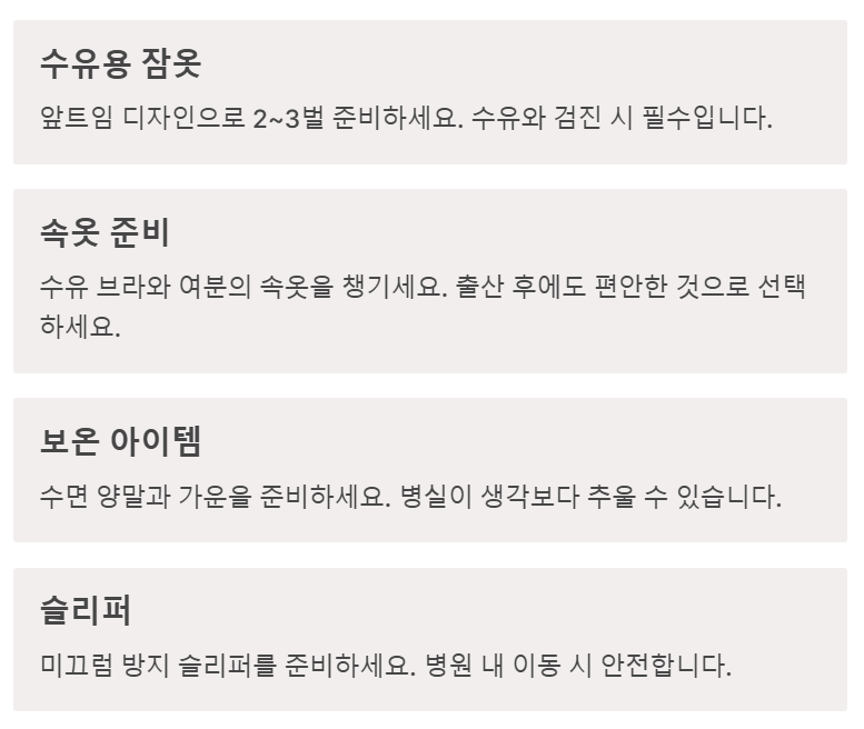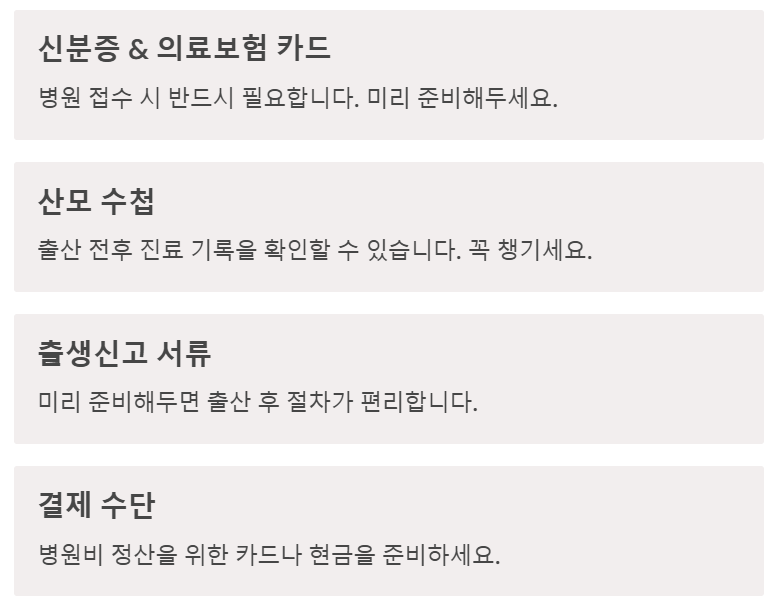 ✅ 일부 병원은 산모 패드, 기저귀, 속싸개 등을 제공하므로 사전 문의 필수!
