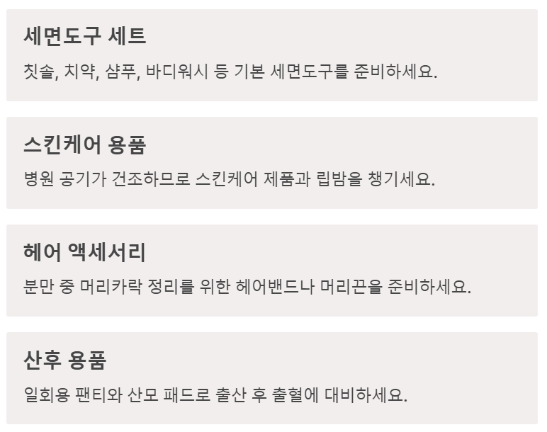 ✅ 병원 정책 확인 → 기본 제공 물품 체크 후 불필요한 짐 줄이기