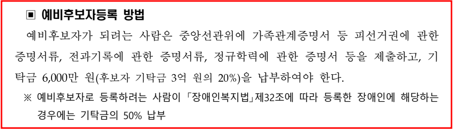- 선거운동 기간: 등록 후 약 20일간 진행