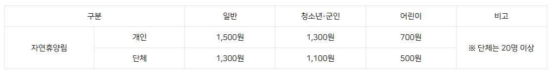- 수목원 휴관일 : 매월 첫째, 셋째 수요일