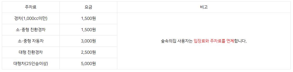 * 셋째 주 수요일 : 숲속의 집 휴관(입장 가능)