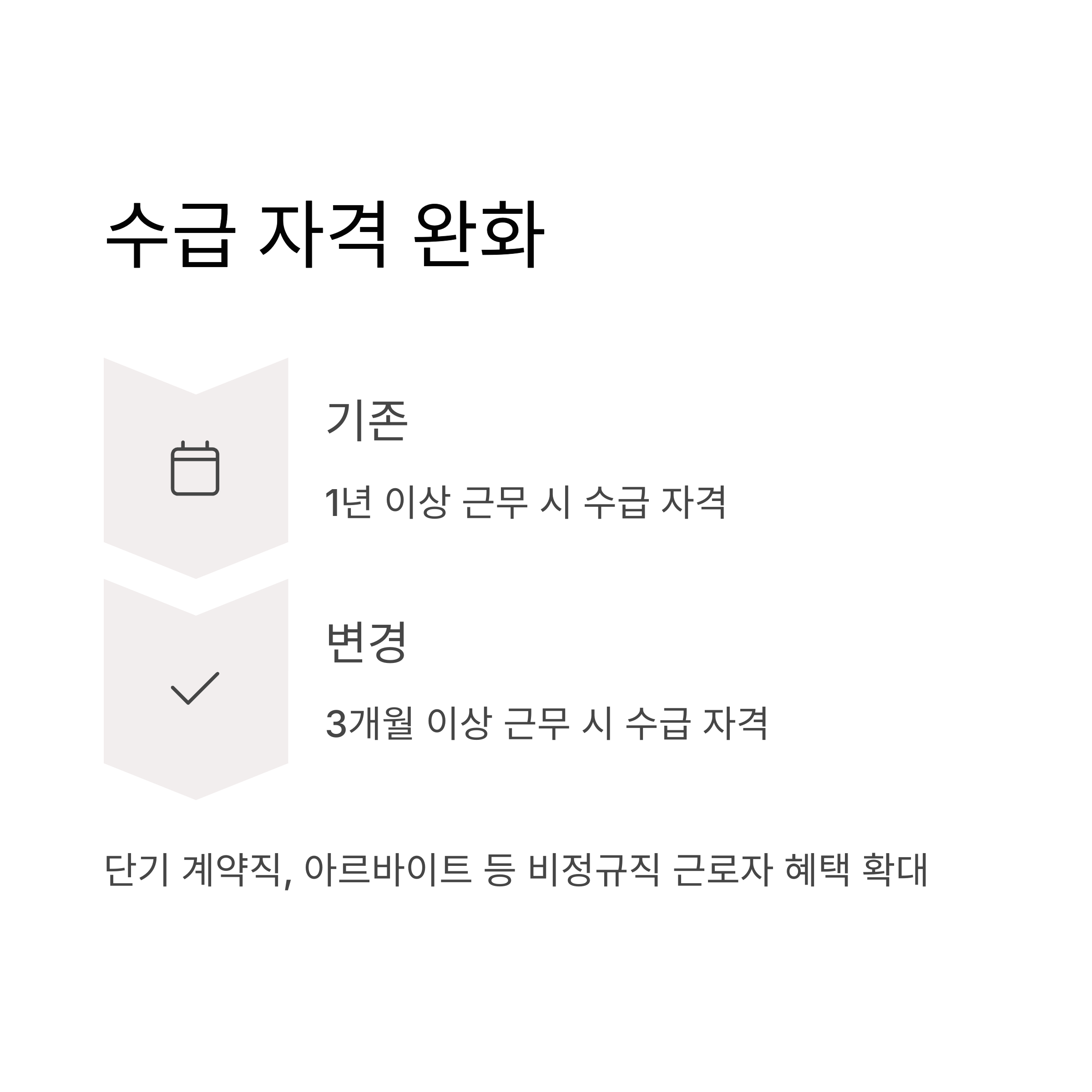 수급 자격도 완화…3개월 이상이면 퇴직급여 받을 수 있어요