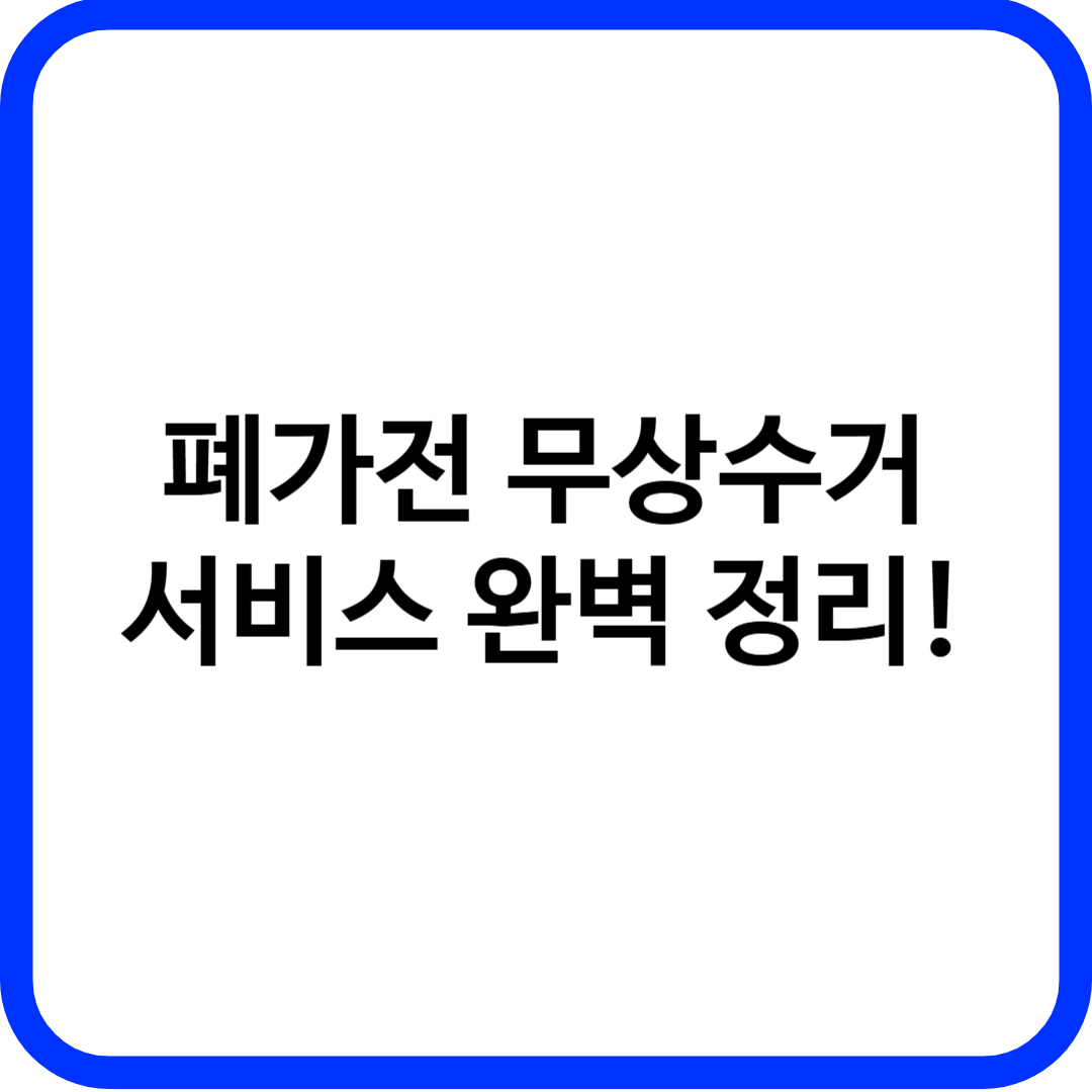 환경부에서 운영하는 "폐가전제품 무상방문수거 서비스"는 대형 가전제품을 무료로 집 앞까지 와서 수거해 가는 친환경 서비스입니다.