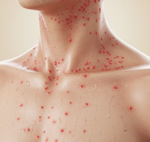 ✔ 운동, 뜨거운 샤워, 스트레스로 인해 체온이 올라가면 작은 붉은 발진 + 강한 가려움 발생