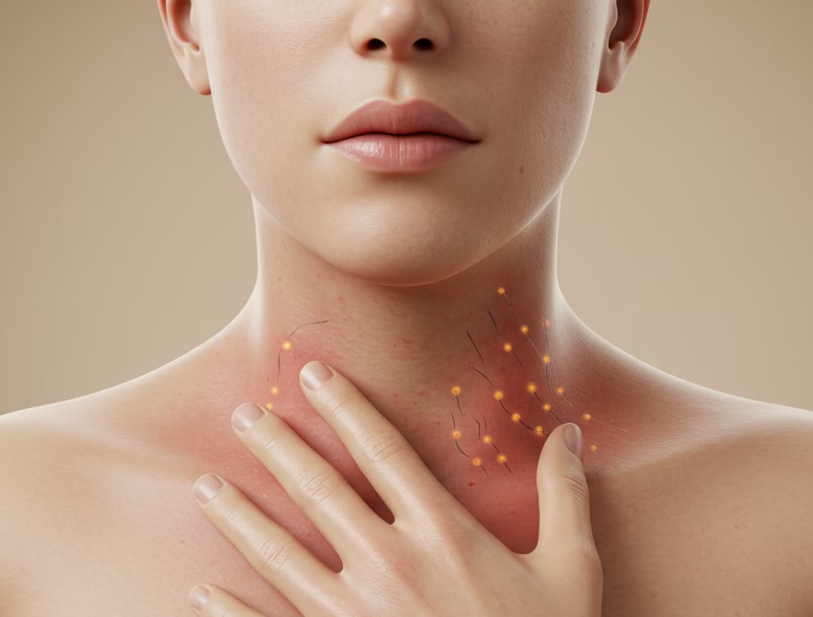 ✔ 특정 음식, 약물, 스트레스 등이 원인이 되어 가려운 붉은 발진이 나타남