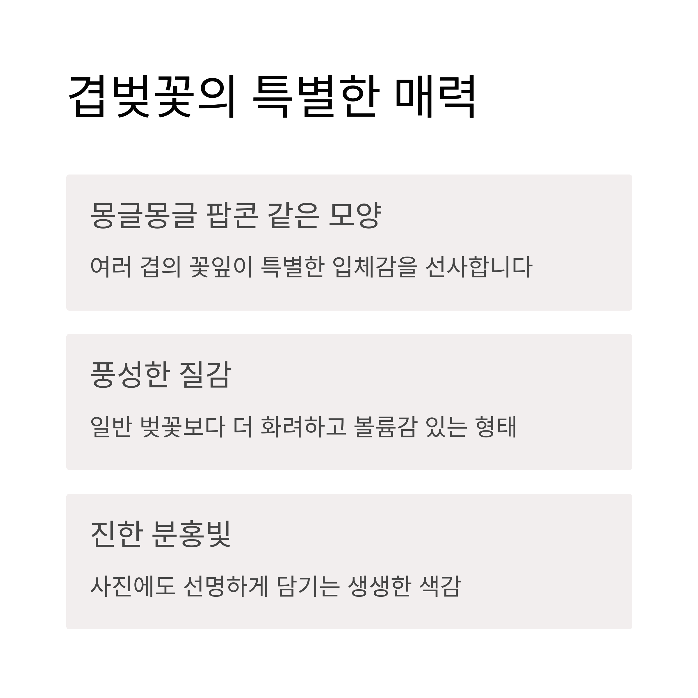 "화려함과 지속력을 모두 갖춘 봄꽃, 바로 겹벚꽃이에요 💮"